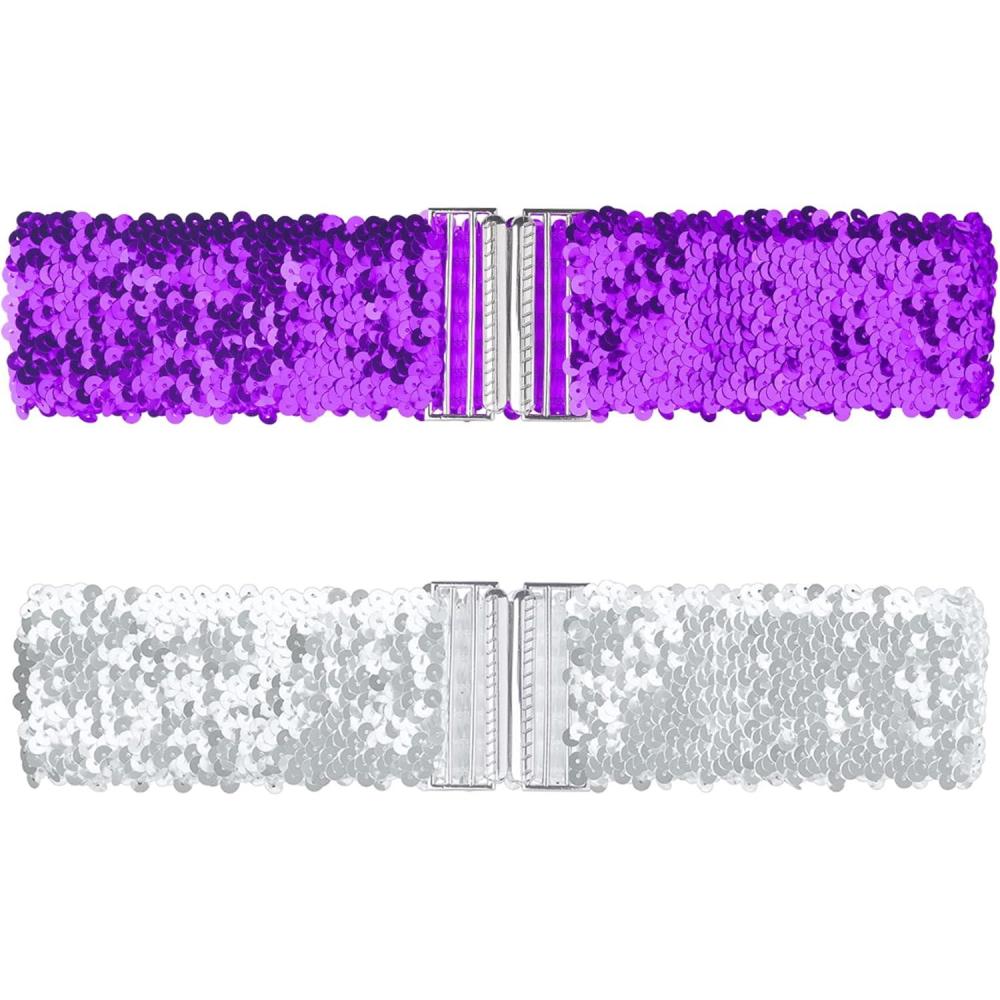 imageAllegra K Womens Glitter Wide Waist Belts Interlock Buckles Sequins Decor Stretchy Belts 2PCSLight Purple