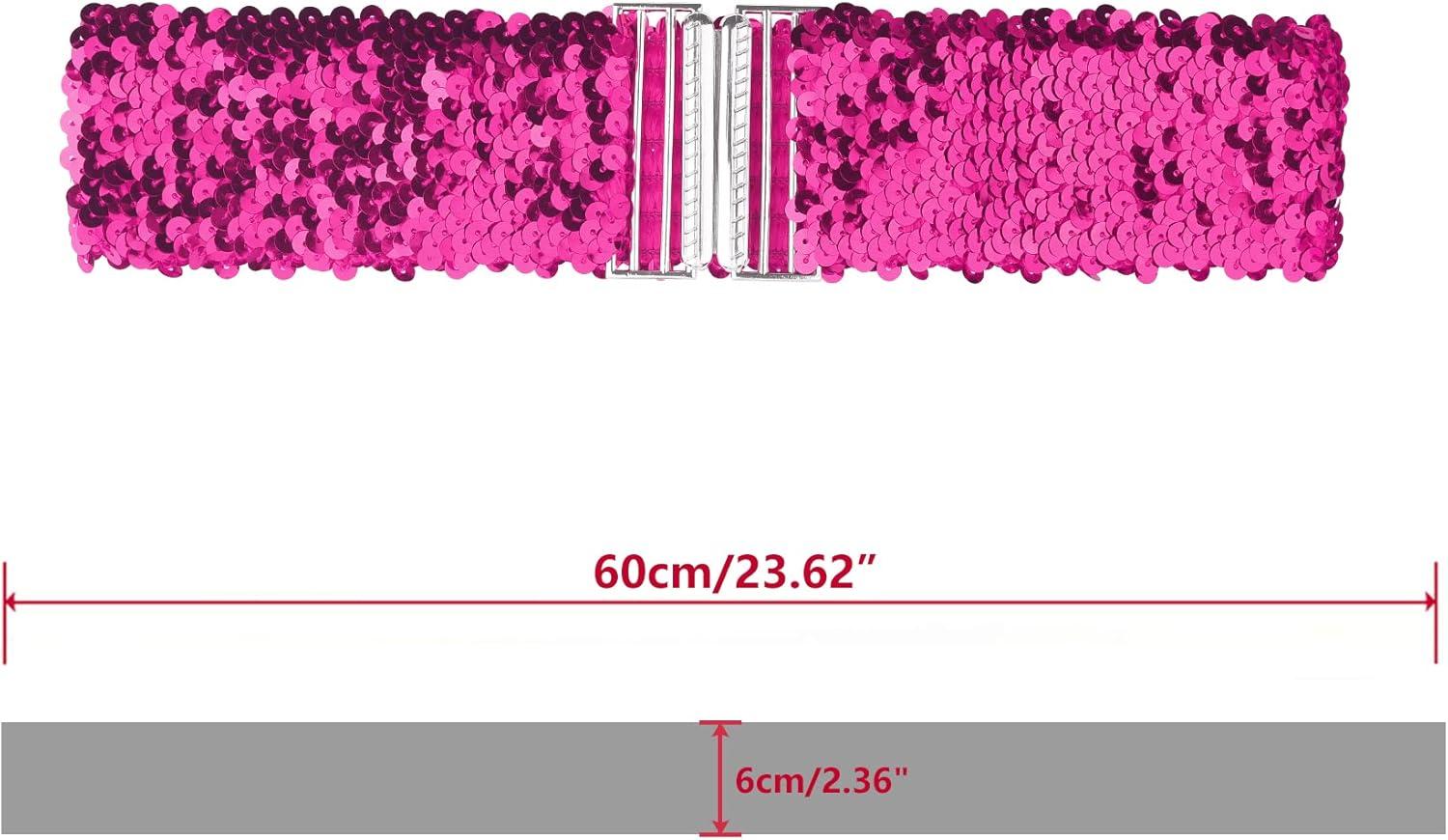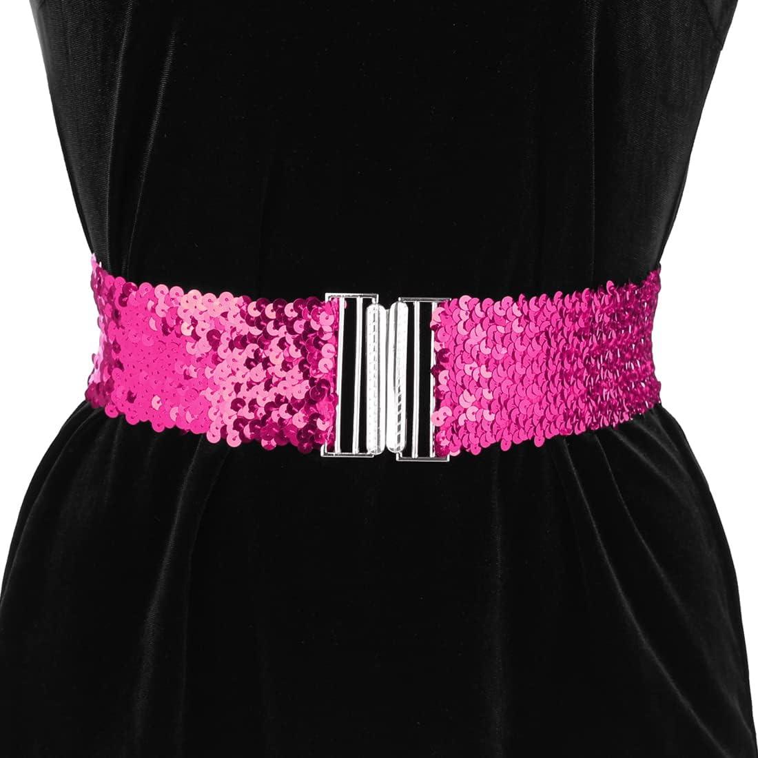 Allegra K Womens Glitter Wide Waist Belts Interlock Buckles Sequins Decor Stretchy Belts 2PCS(Rose Red)