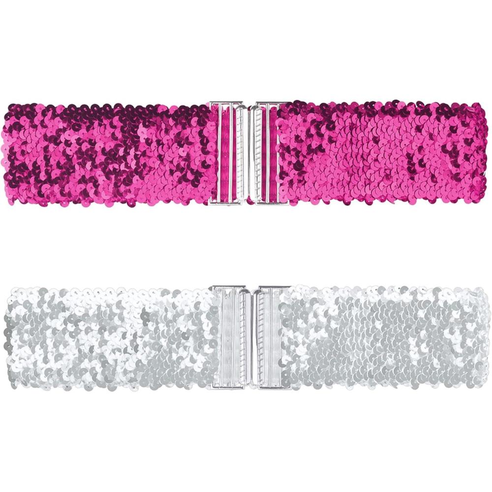 imageAllegra K Womens Glitter Wide Waist Belts Interlock Buckles Sequins Decor Stretchy Belts 2PCSRose Red