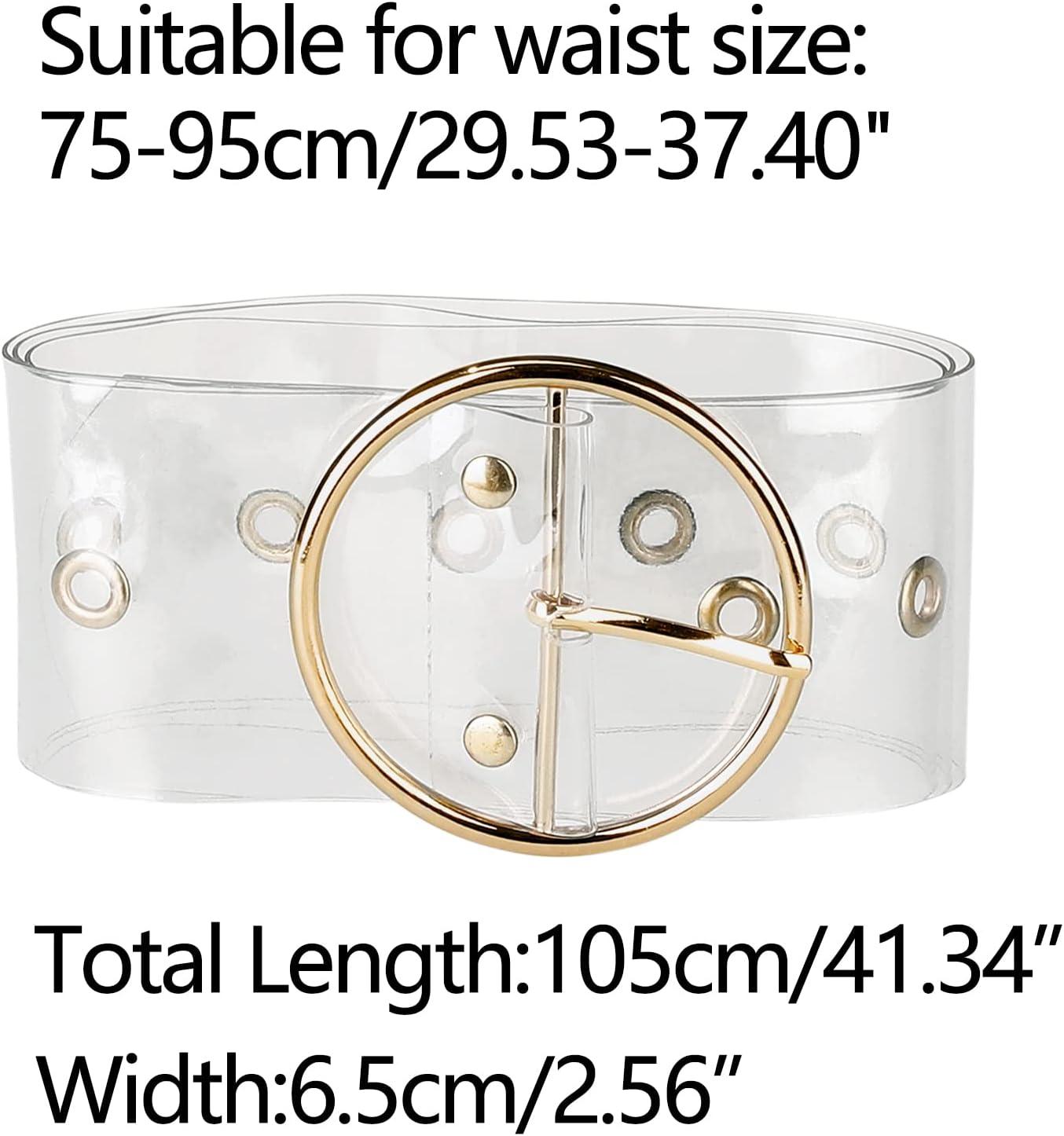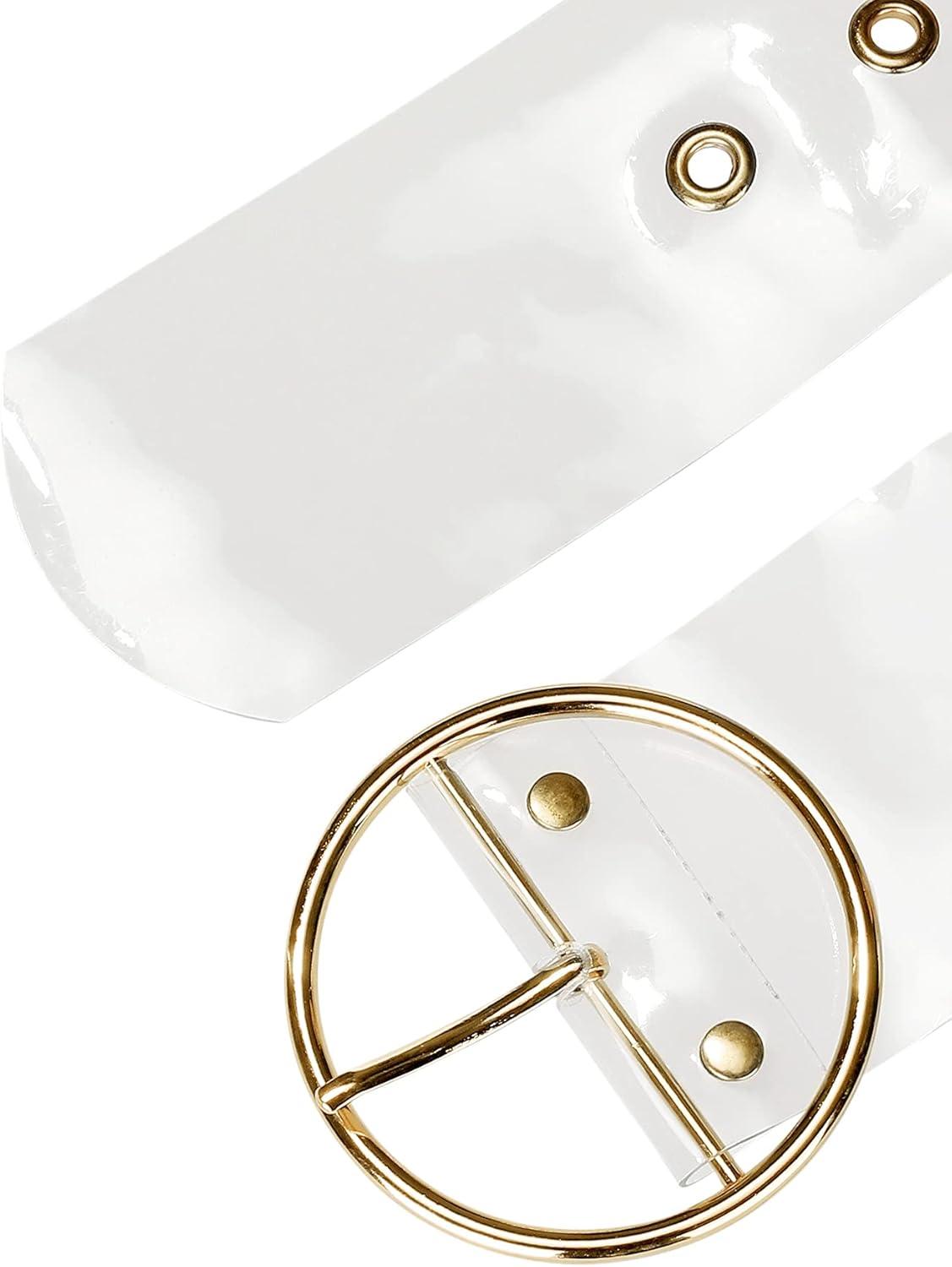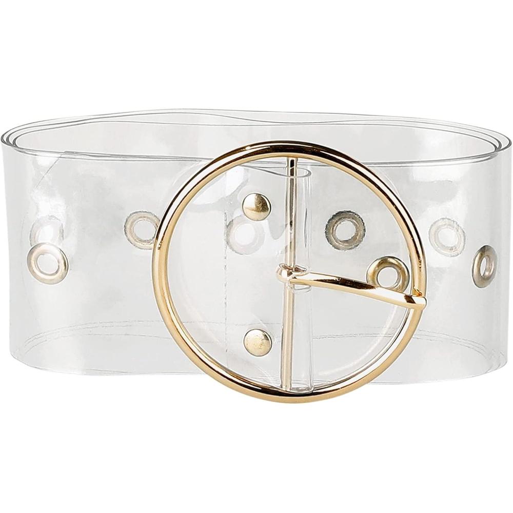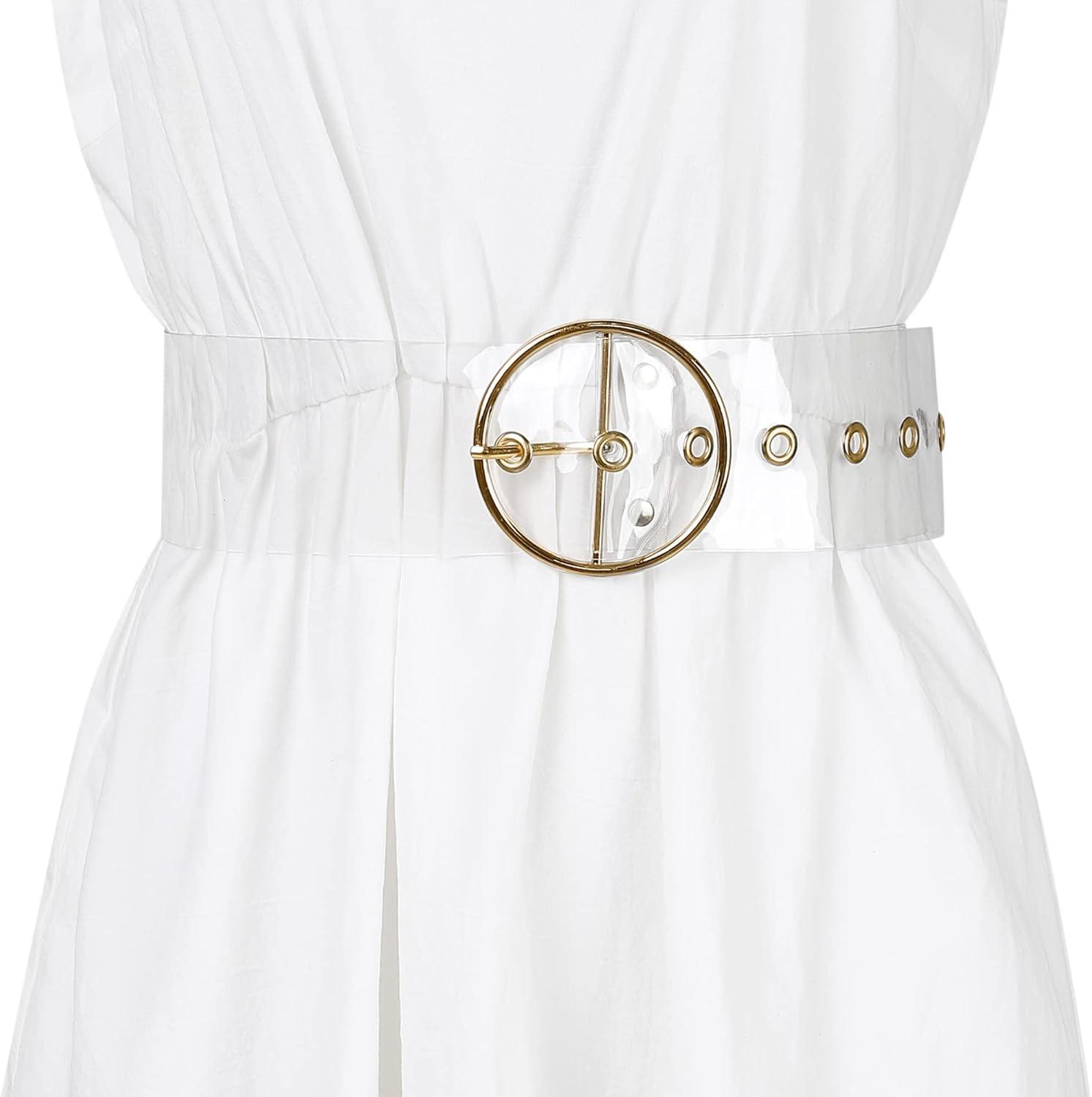 Allegra K Womens Grommet Clear Wide Waist Belts for Dresses Transparent Belts Pin Buckle(Gold Round Buckle)