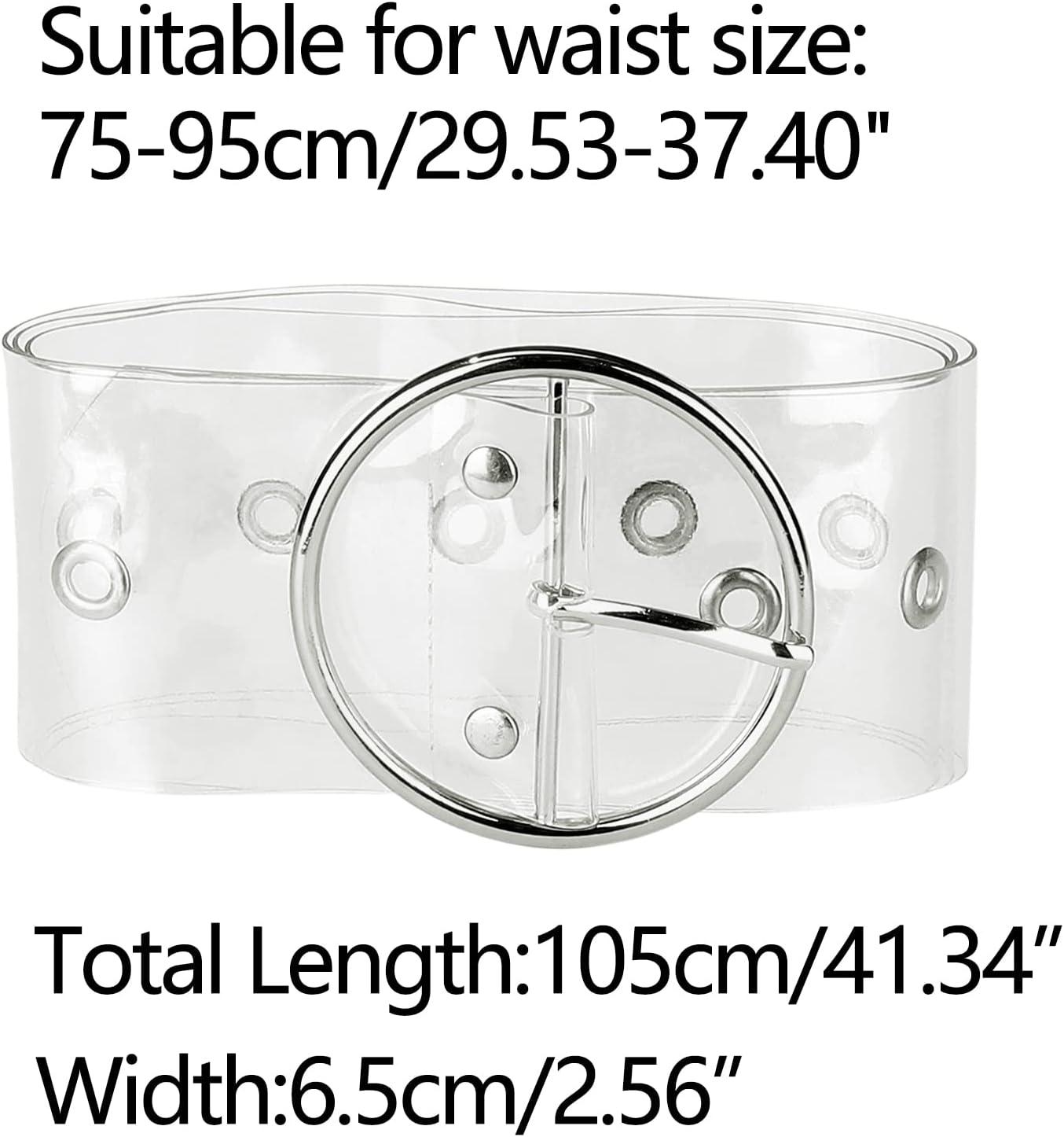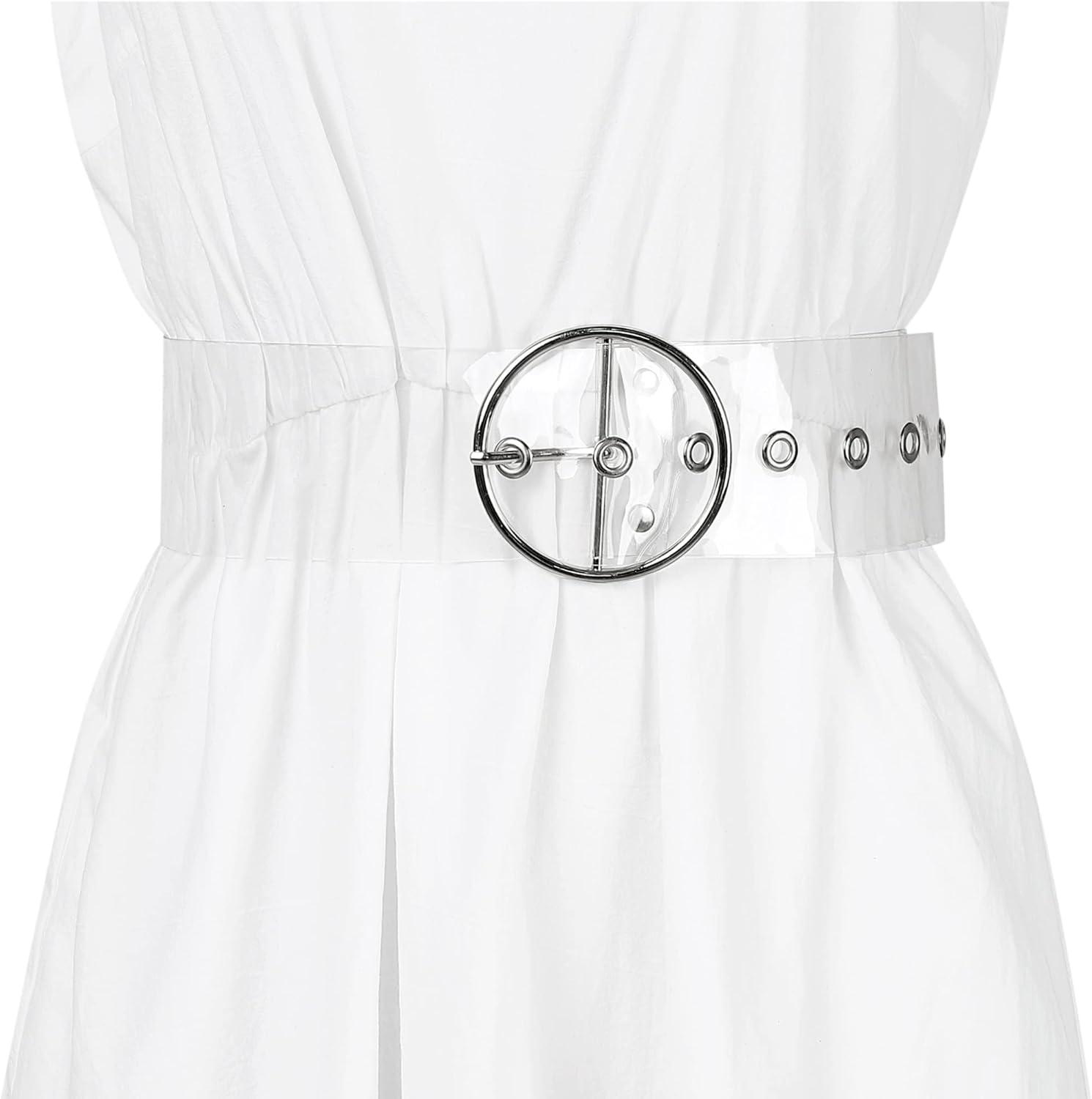 Allegra K Womens Grommet Clear Wide Waist Belts for Dresses Transparent Belts Pin Buckle(Silver Round Buckle)