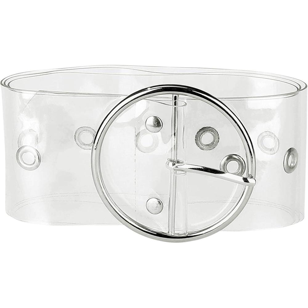 imageAllegra K Womens Grommet Clear Wide Waist Belts for Dresses Transparent Belts Pin BuckleSilver Round Buckle