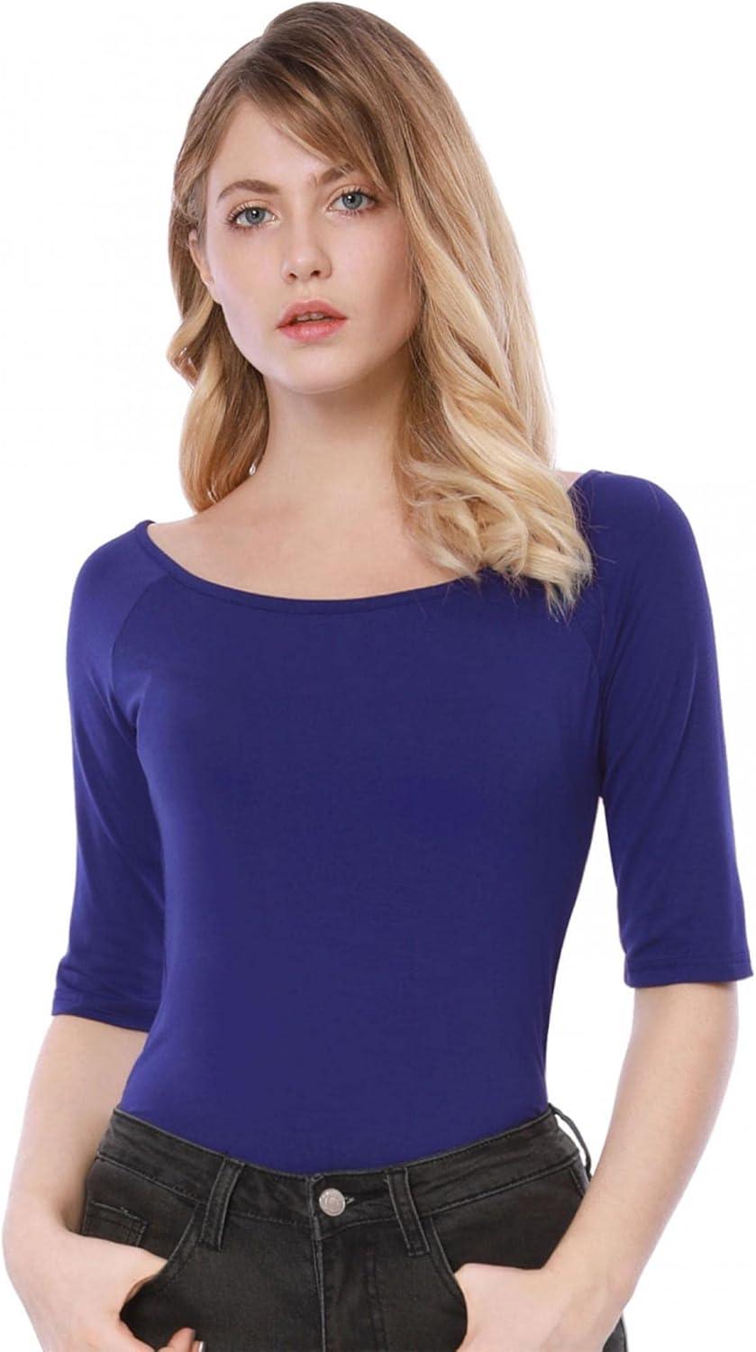 Allegra K Women's Half Sleeves Scoop Neck Fitted Layering Top Soft T-Shirt(Blue)