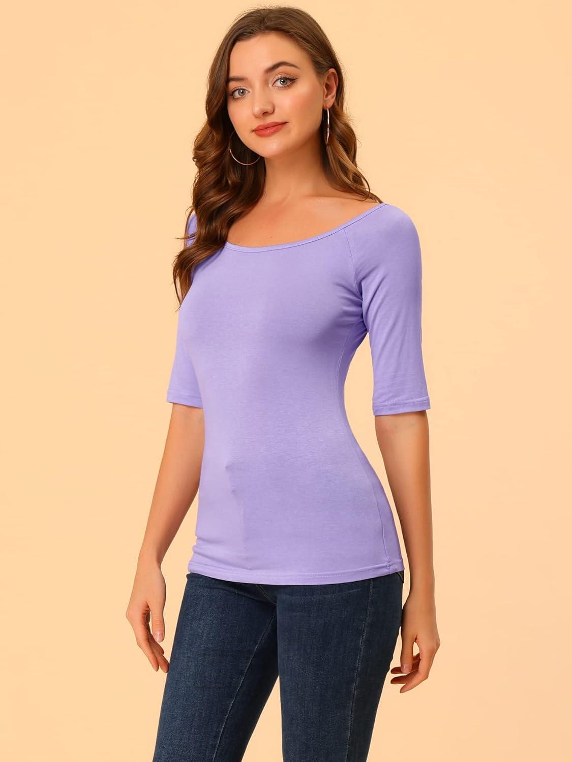 Allegra K Women’s Half Sleeves Scoop Neck Fitted Layering Top Soft T-Shirt(Lavender)