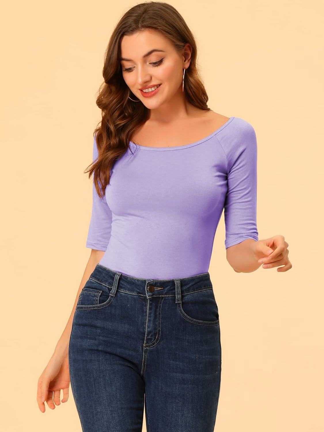 imageAllegra K Womens Half Sleeves Scoop Neck Fitted Layering Top Soft TShirtLavender