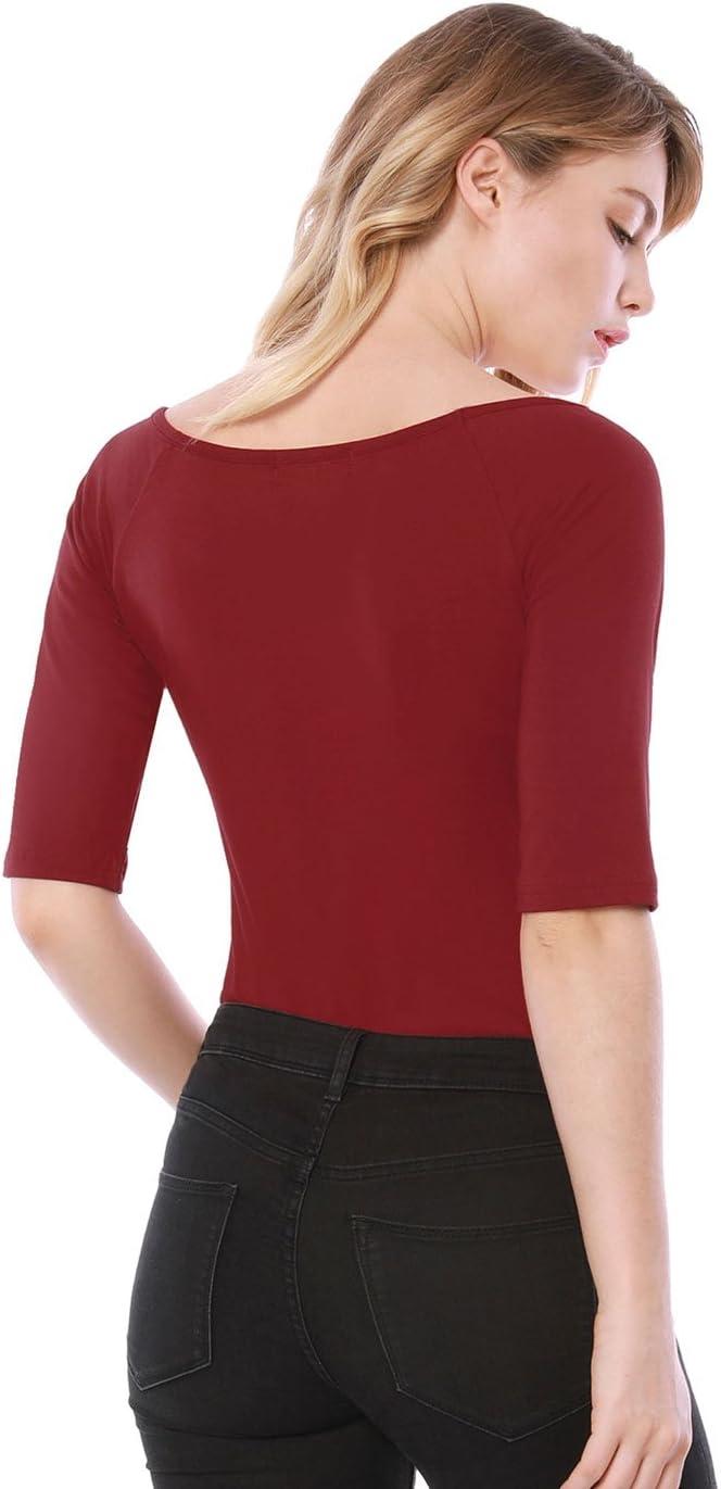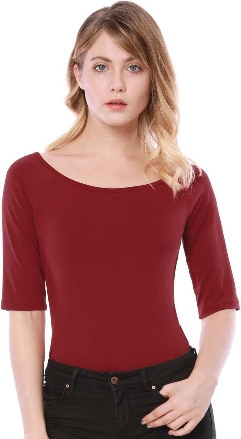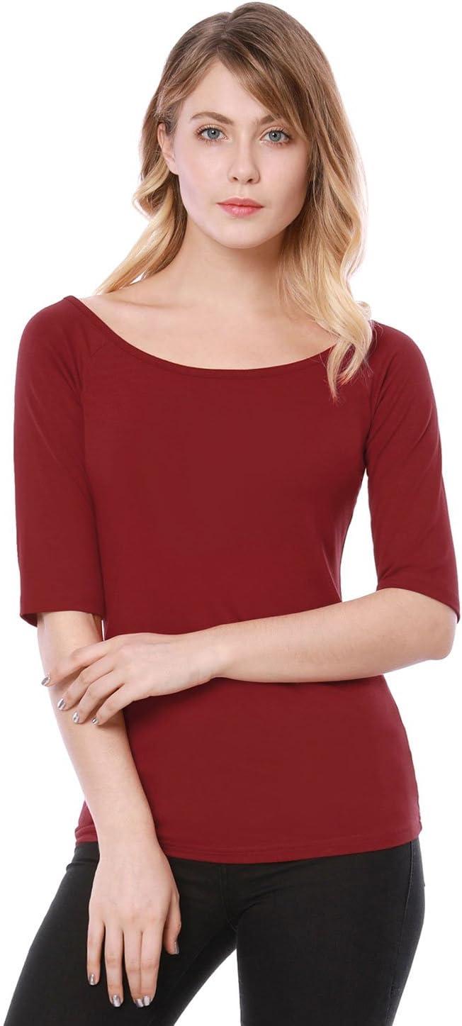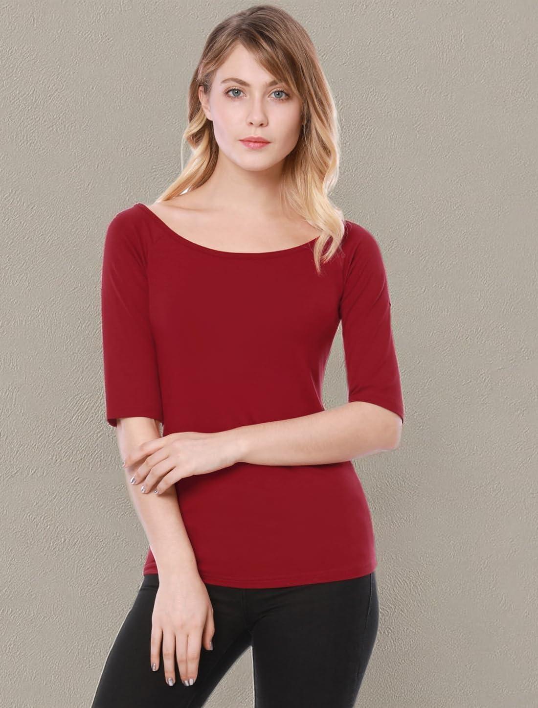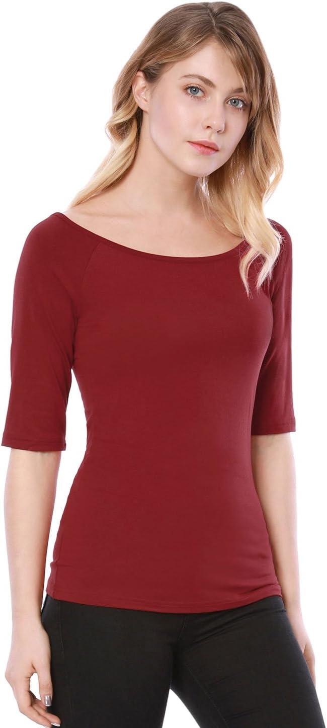 Allegra K Women’s Half Sleeves Scoop Neck Fitted Layering Top Soft T-Shirt(Red)