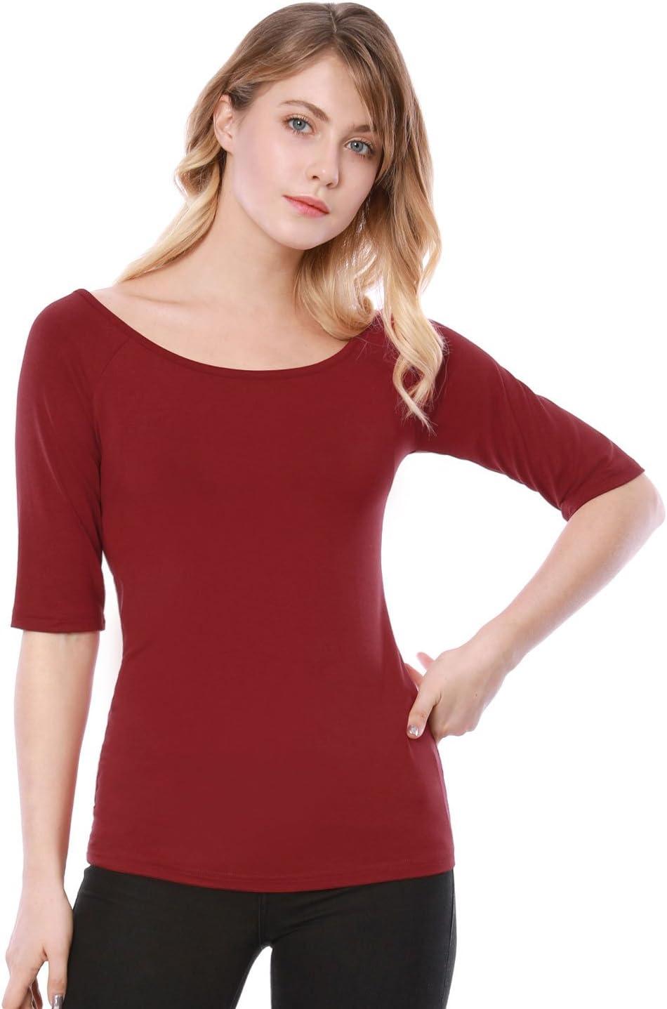 Allegra K Women’s Half Sleeves Scoop Neck Fitted Layering Top Soft T-Shirt(Dark Purple)