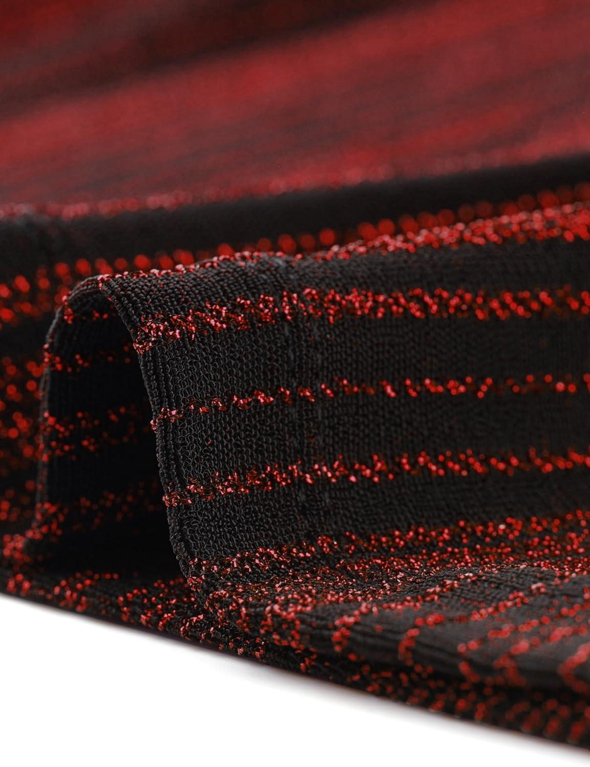 Allegra K Women’s Halloween 3/4 Sleeve Glitter Party Sparkly Shiny Metallic Tops(Red)