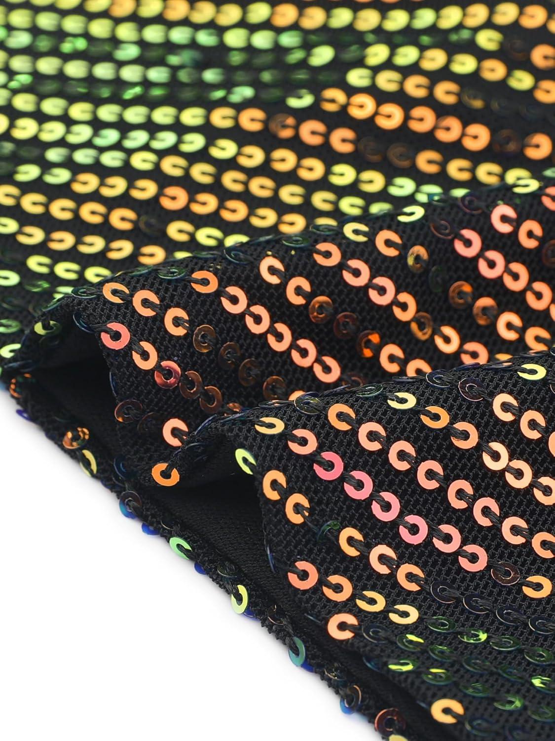 Allegra K Women’s Halloween Sequin Spaghetti Straps Crisscross Backless Party Crop Cami Top(Multicolor)