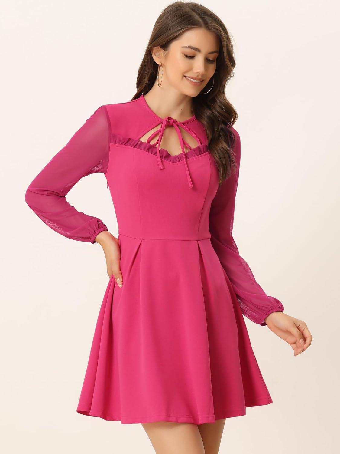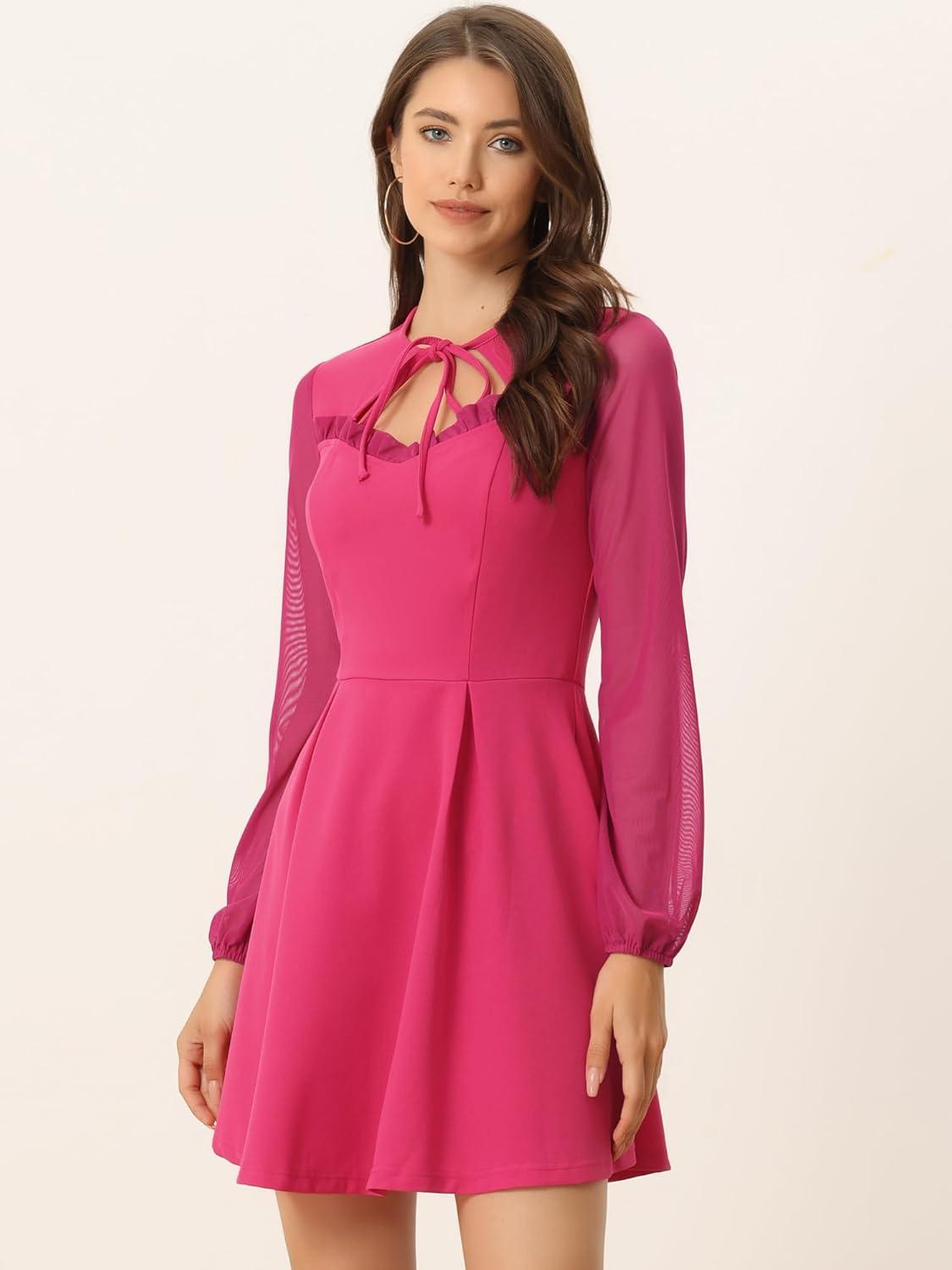 Allegra K Women’s Halloween Sweetheart Neckine Cutout A-Line Mesh Sleeve Gothic Mini Dress(Hot Pink)