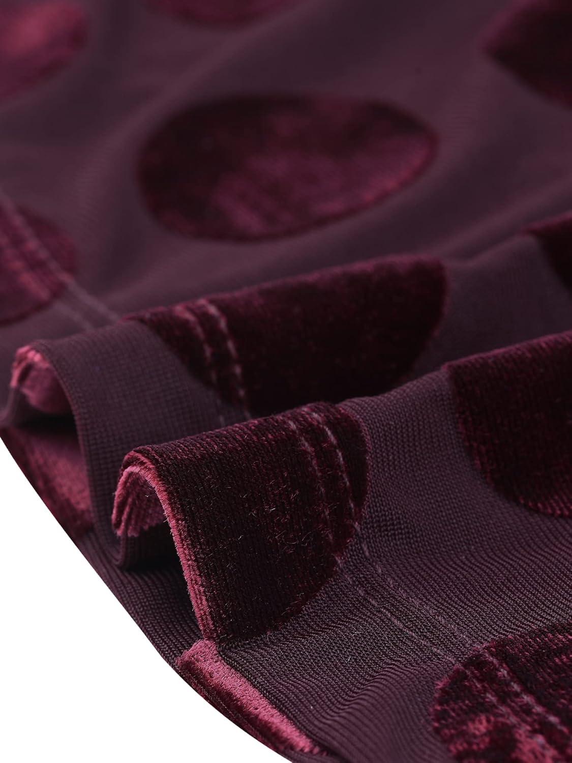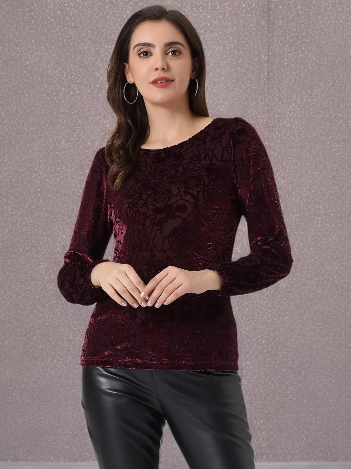 Allegra K Women’s Halloween Velvet Top Semi Sheer Burn-Out Long Sleeve Printed Top(Burgundy)