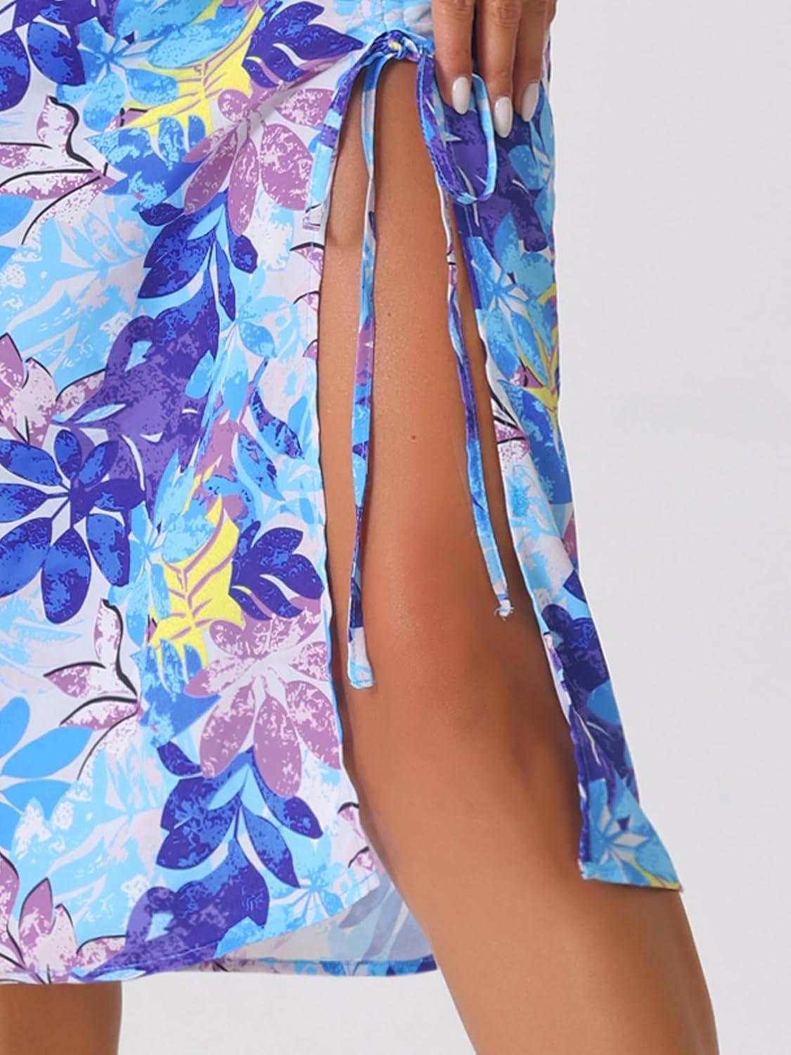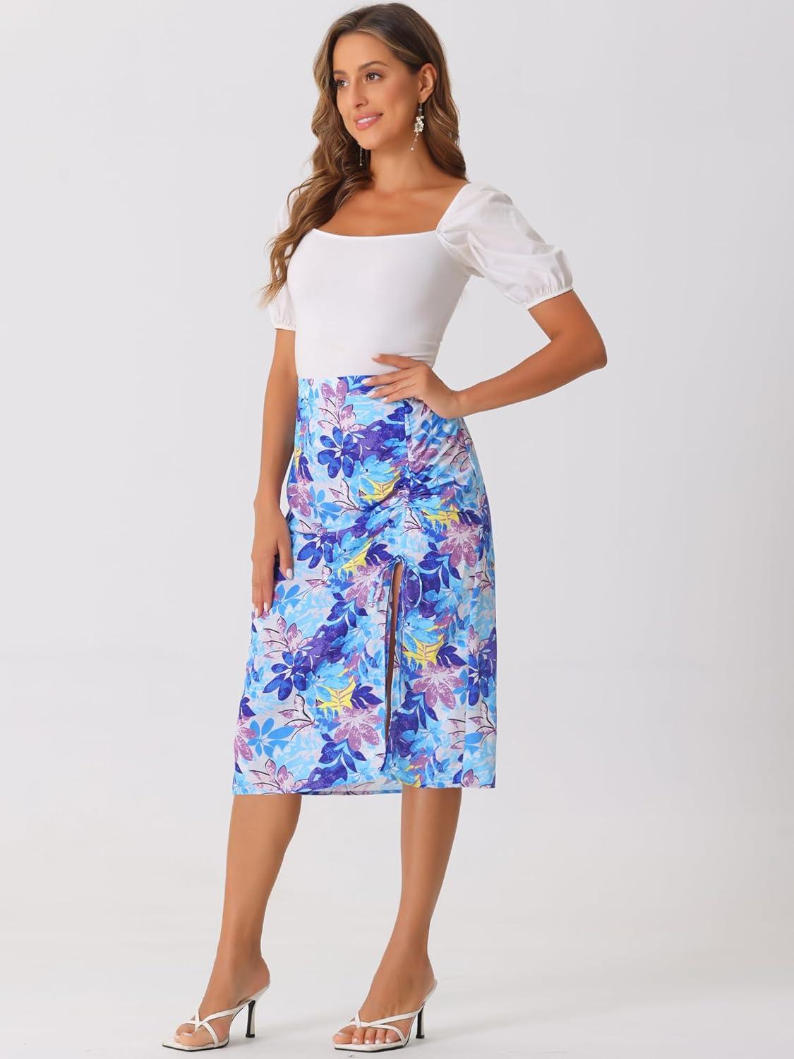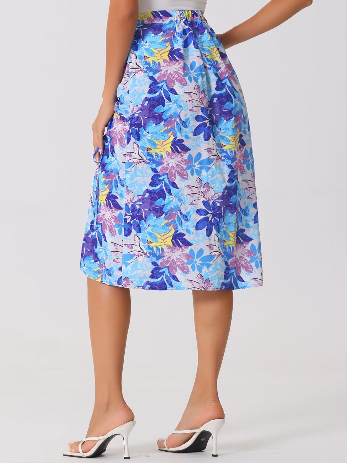 Allegra K Women’s Hawaiian Skirts Summer Beach Ruched Split Thigh Tropical Skirt(Blue)
