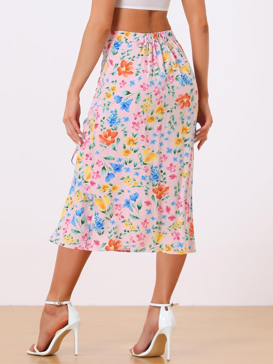 Allegra K Women’s Hawaiian Skirts Summer Beach Ruched Split Thigh Tropical Skirt(Pink)