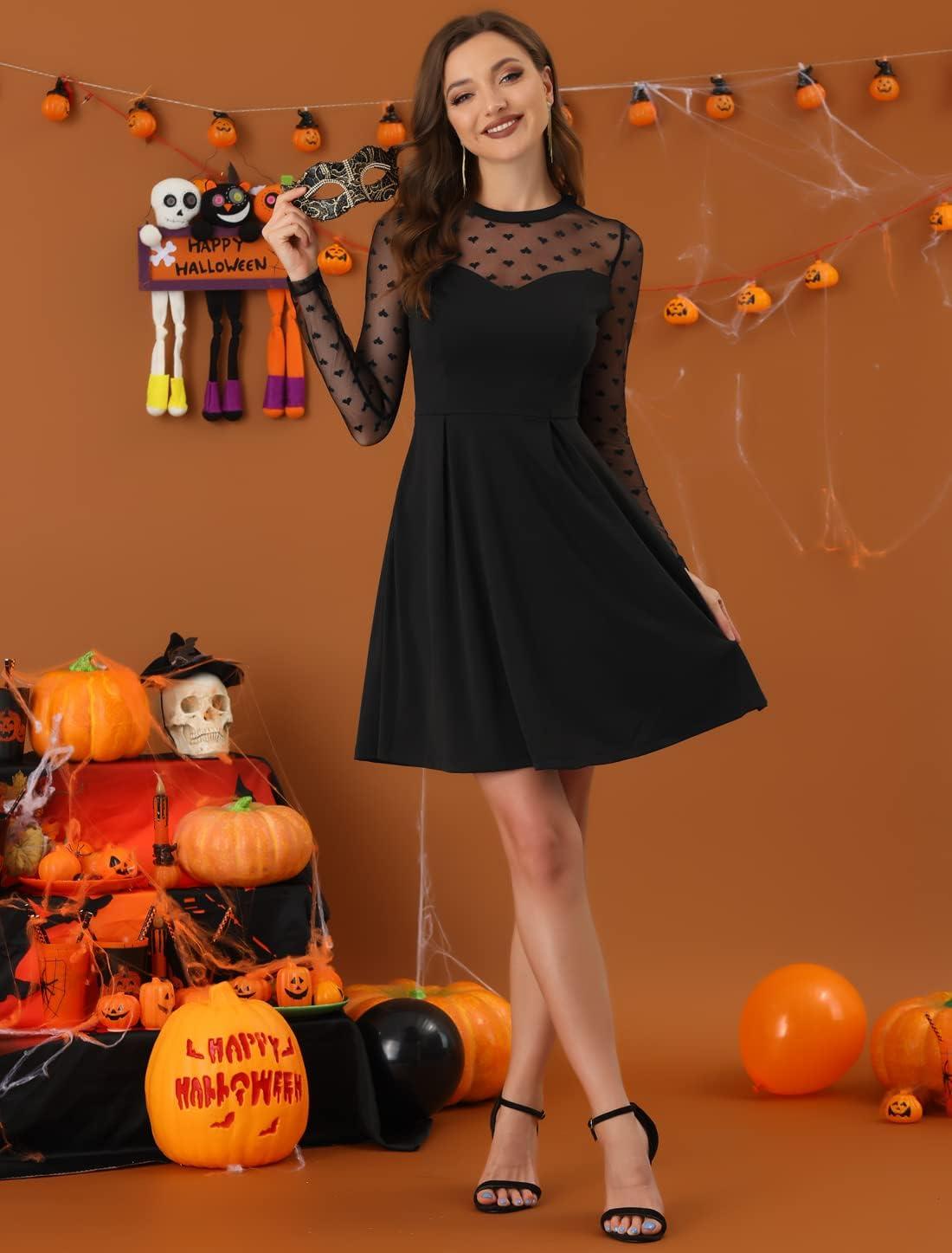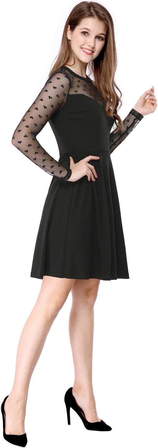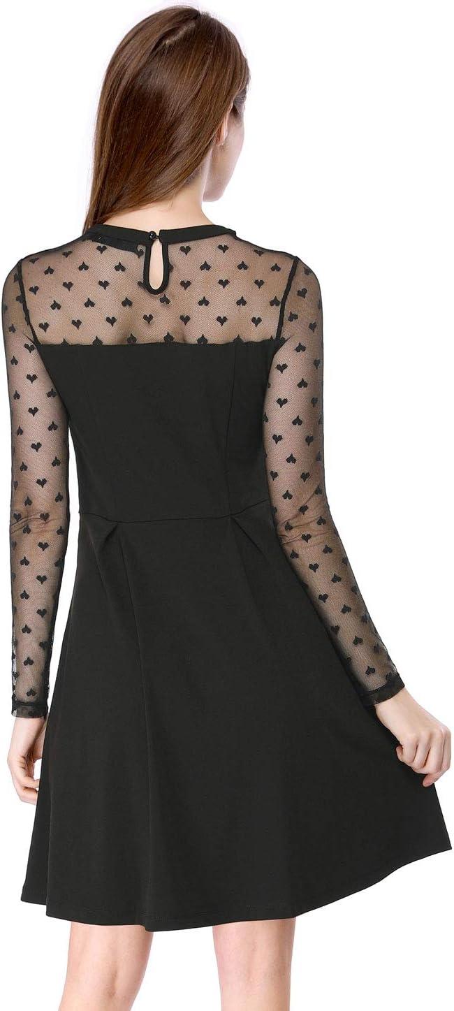 Allegra K Women’s Heart Mesh Sheer Long Sleeve Gothic Cocktail Wedding Guest Skater Party Short Dress(Black)