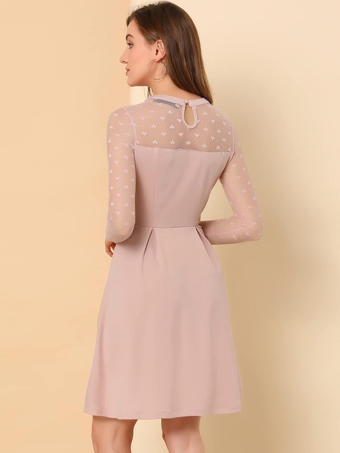 imageAllegra K Womens Heart Mesh Sheer Long Sleeve Gothic Cocktail Wedding Guest Skater Party Short DressPink