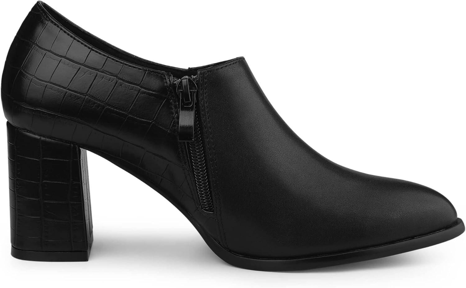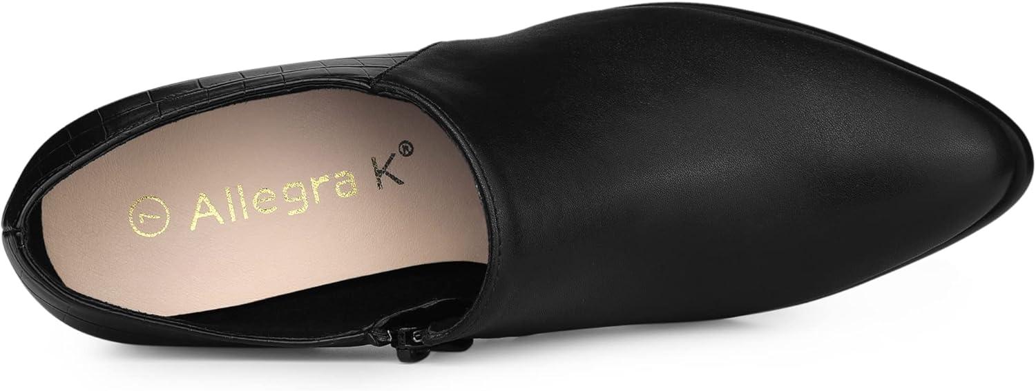 Allegra K Women's Heel Boots Pointed Toe Chunky Heels Ankle Booties(Black)