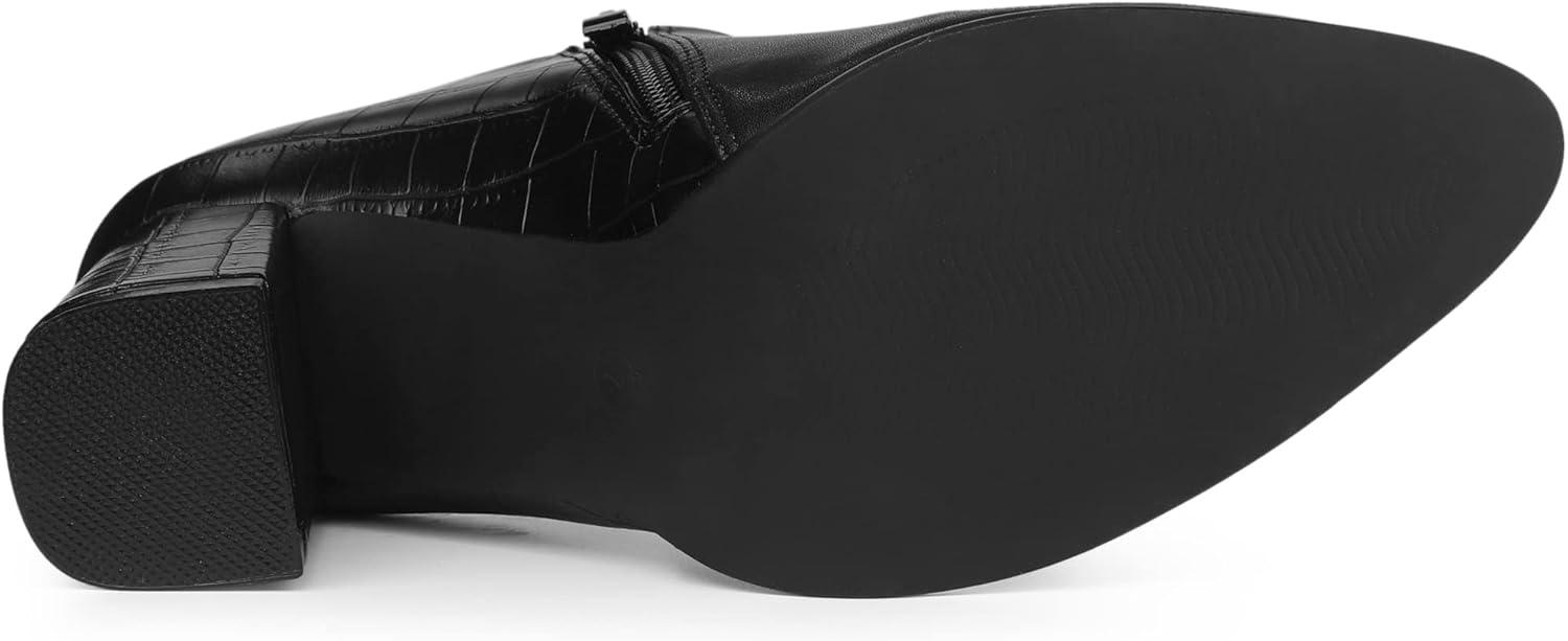 Allegra K Women’s Heel Boots Pointed Toe Chunky Heels Ankle Booties(Black)