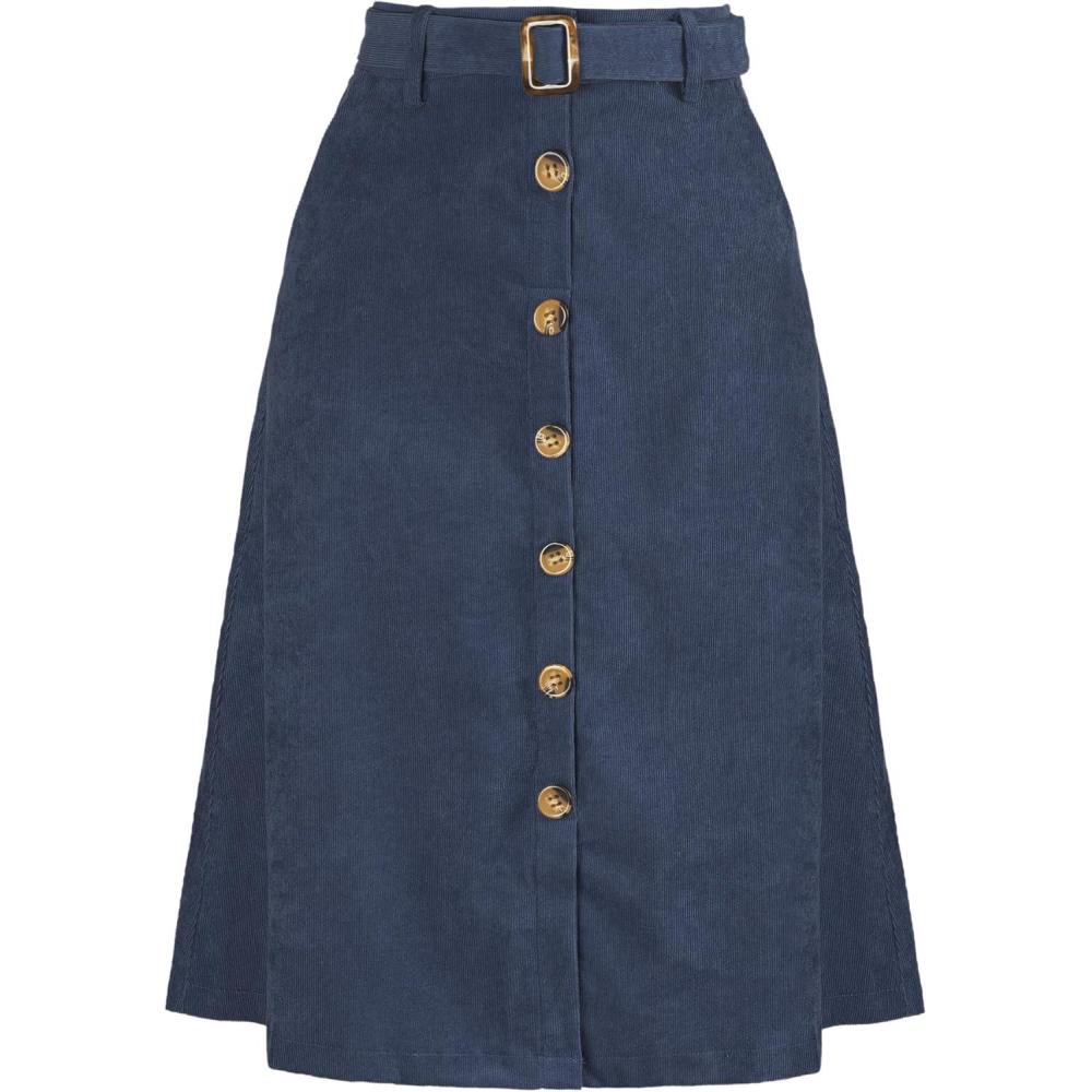 imageAllegra K Womens High Waist Button Front ALine Belted Corduroy Midi SkirtDark Blue