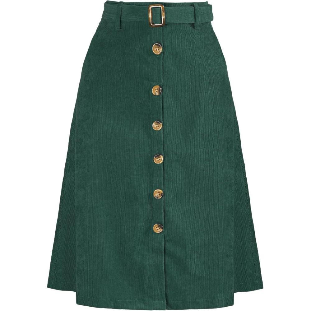 imageAllegra K Womens High Waist Button Front ALine Belted Corduroy Midi SkirtDark Green