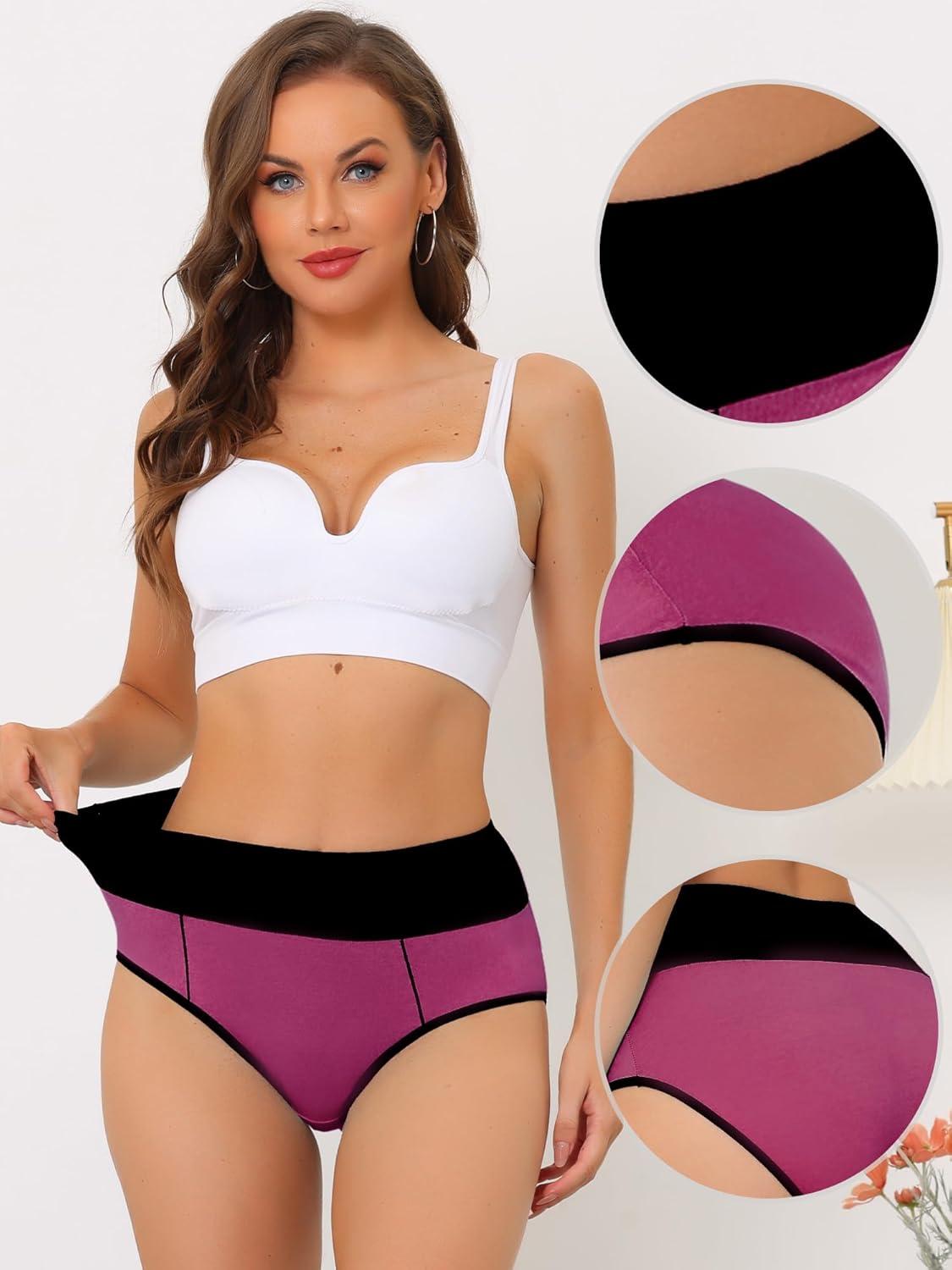 Allegra K Women’s High Waist Tummy Control Color-Block Brief, Available in Plus Size(Dark Purple)