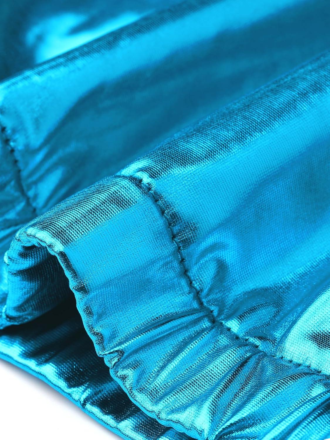 Allegra K Women’s Holographic Shiny Party Christmas Long Sleeve Lightweight Zipper Metallic Jacket(Medium Blue)