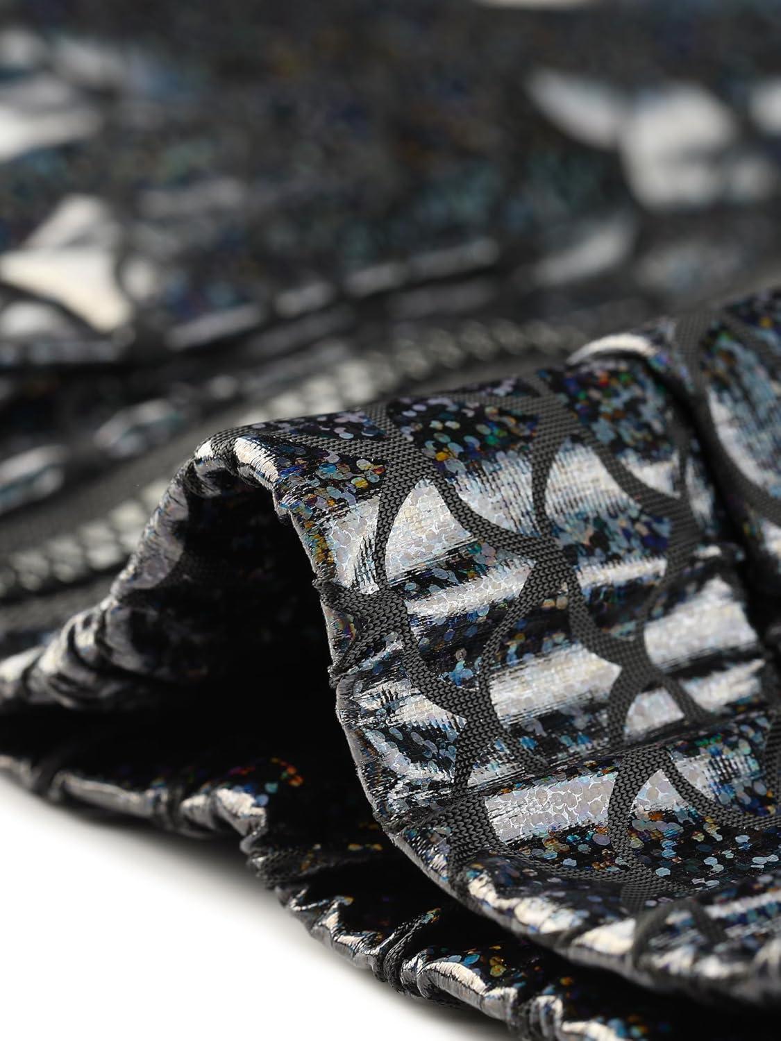 Allegra K Women’s Holographic Shiny Party Christmas Long Sleeve Lightweight Zipper Metallic Jacket(Mermaid Black)