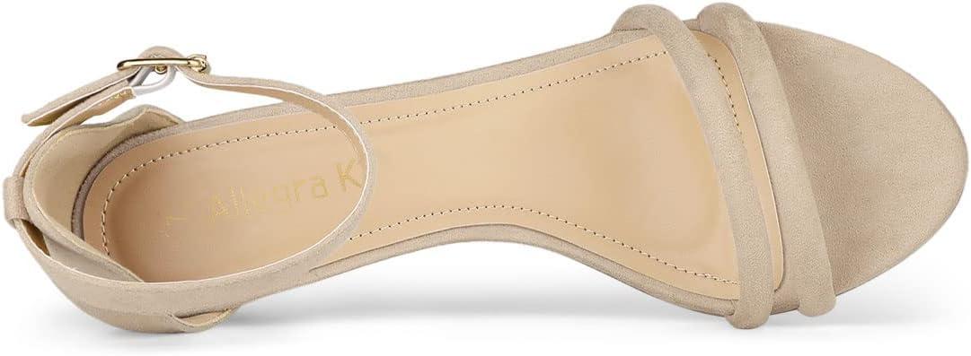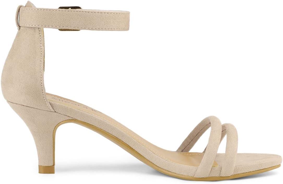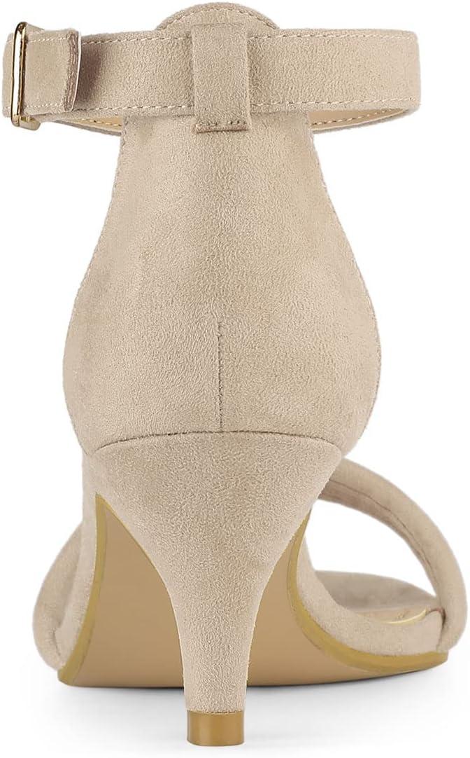 Allegra K Women’s Kitten Heel Ankle Strap Sandals Shoes(Beige)