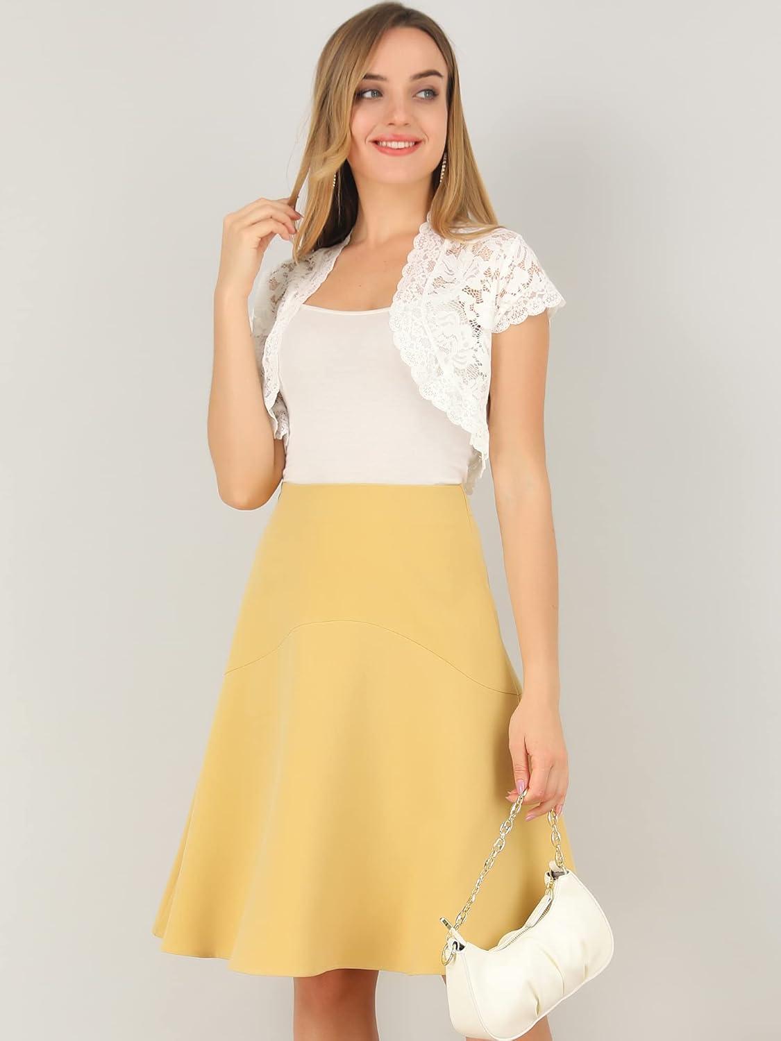 Allegra K Women’s Lace Cardigan Open Front Elegant Short Sleeve Sheer Floral Cropped Bolero Lace Shrug Top(White)