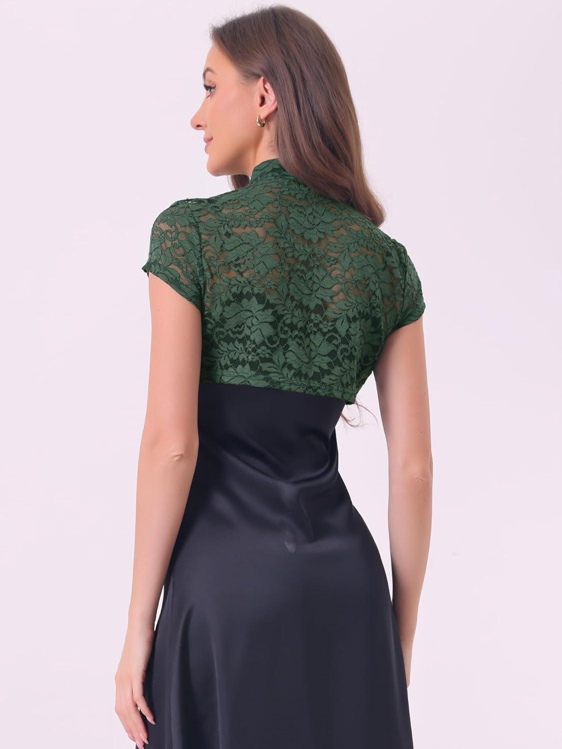 Allegra K Women’s Lace Cardigan Stand Collar Short Elegant Shrug Open Front Cropped Bolero Cardigan(Green)