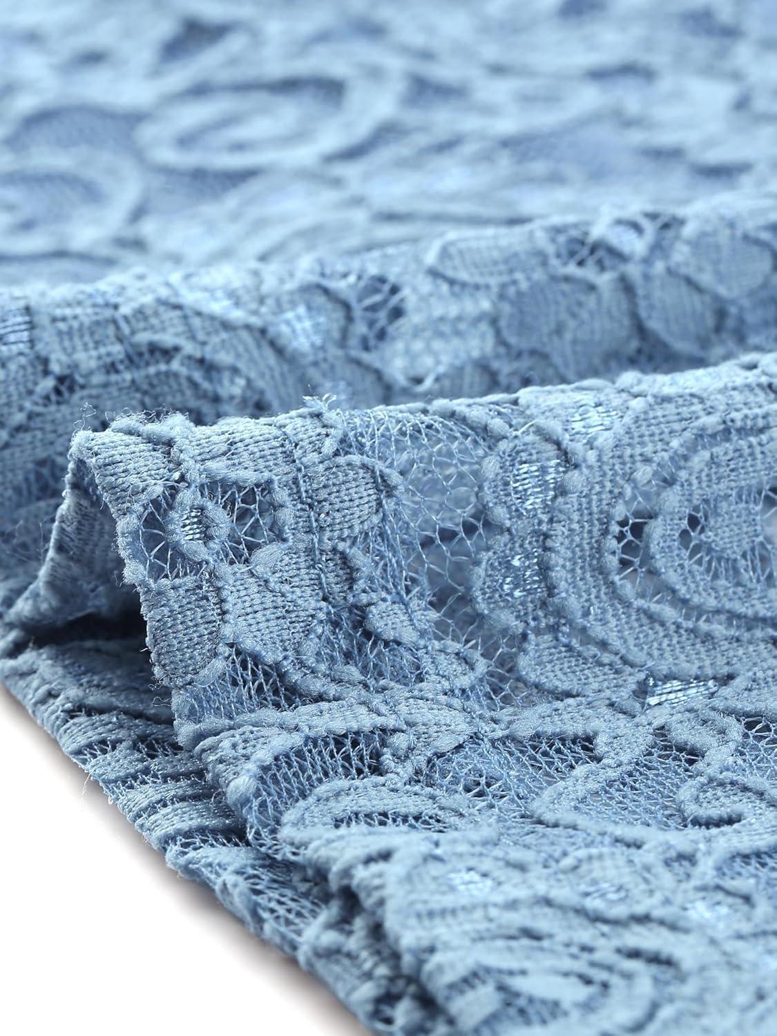 Allegra K Women’s Lace Floral Embroidery Mock Turtle Neck Long Sleeve Party Slim Fit Sexy Sheer Mesh Top(Dusty Blue)