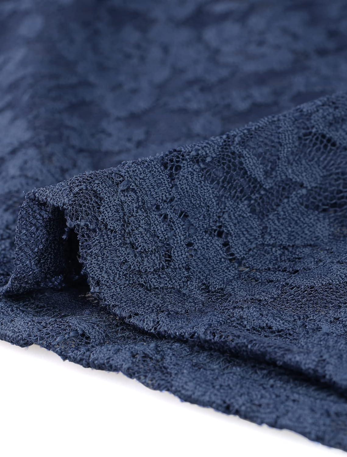 Allegra K Women’s Lace Floral Embroidery Mock Turtle Neck Long Sleeve Party Slim Fit Sexy Sheer Mesh Top(Navy Blue)