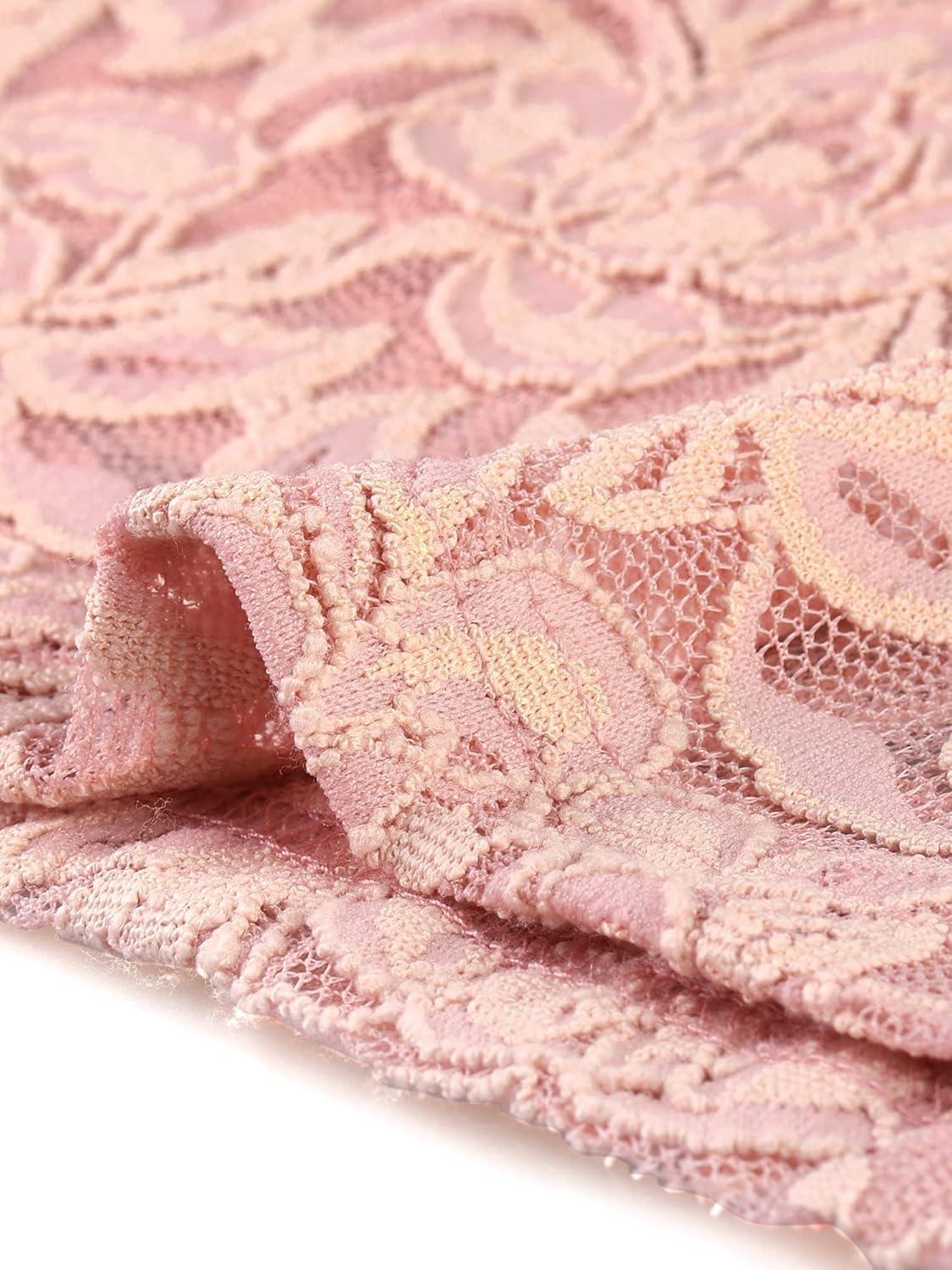 Allegra K Women’s Lace Floral Embroidery Mock Turtle Neck Long Sleeve Party Slim Fit Sexy Sheer Mesh Top(Pink)