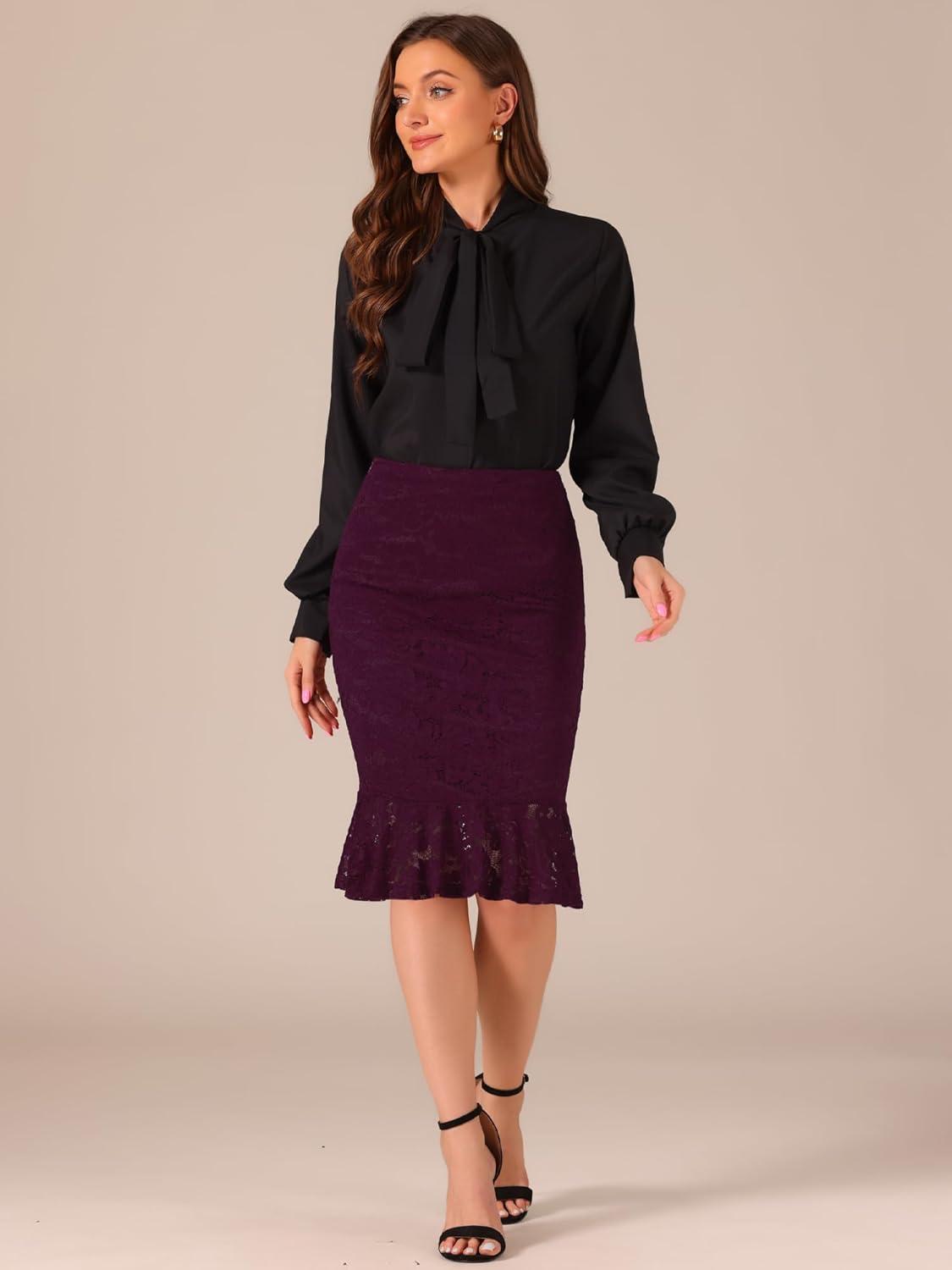 Allegra K Women’s Lace Skirts Elegant Casual Work Office Skirt Knee Length Bodycon Fishtail Lace Pencil Skirt(Burgundy)