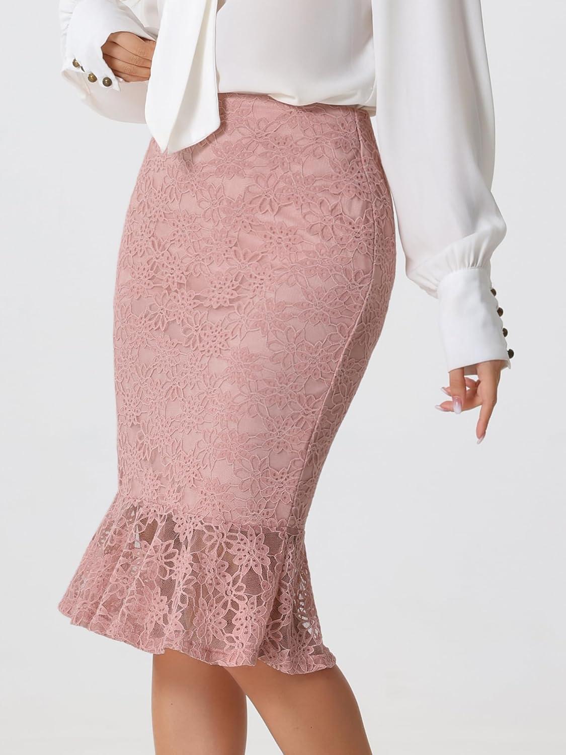 Allegra K Women’s Lace Skirts Elegant Casual Work Office Skirt Knee Length Bodycon Fishtail Lace Pencil Skirt(Pink)