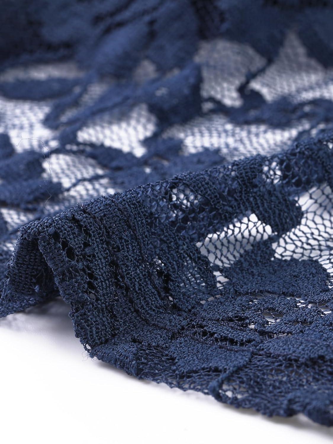 Allegra K Women’s Lace Top Long Sleeve Smocked Mock Neck See Through Sheer Top Blouse(Dark Blue)