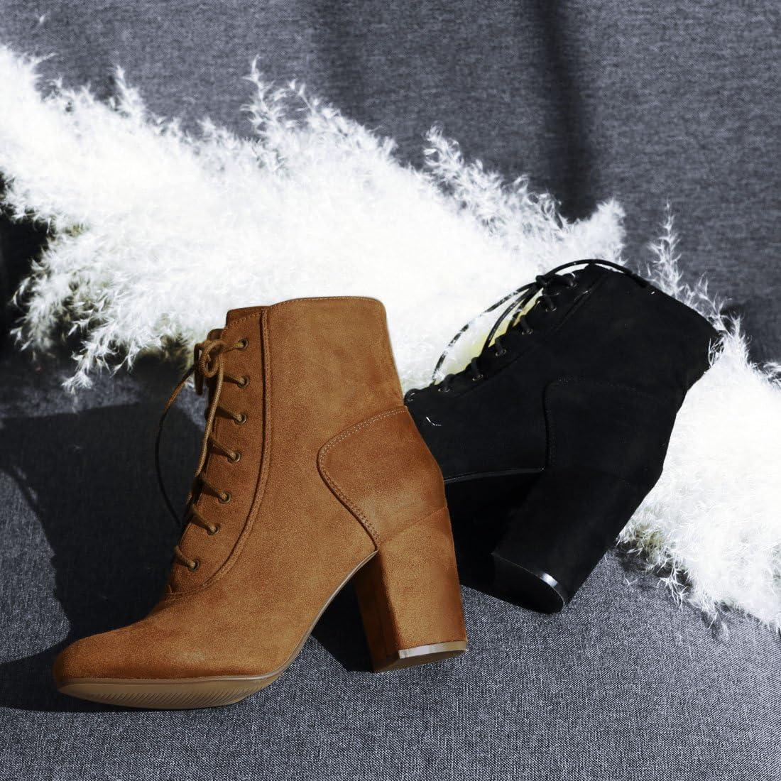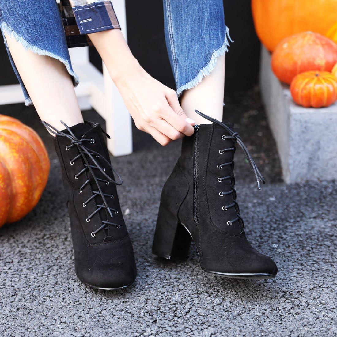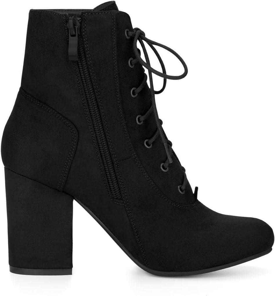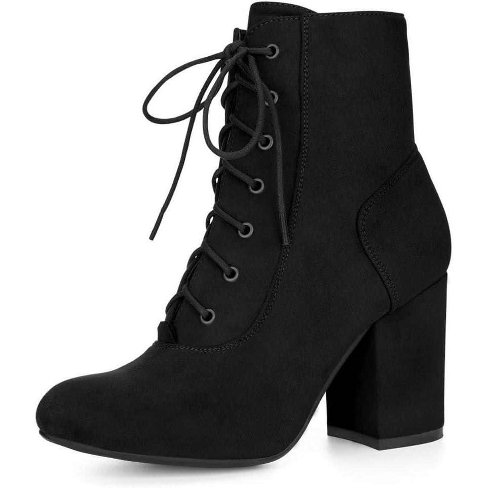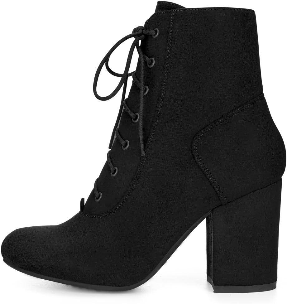 Allegra K Women's Lace Up Chunky Heel Ankle Booties(Black)
