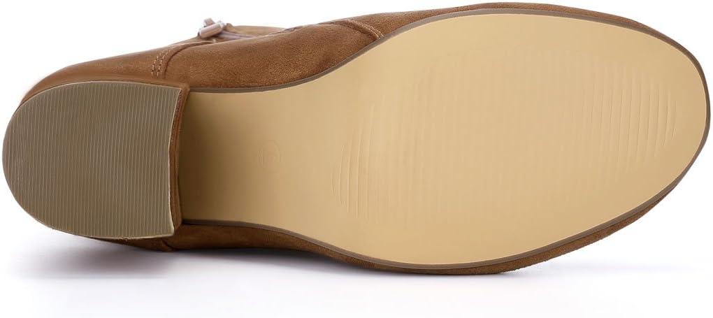 Allegra K Women’s Lace Up Chunky Heel Ankle Booties(Brown)
