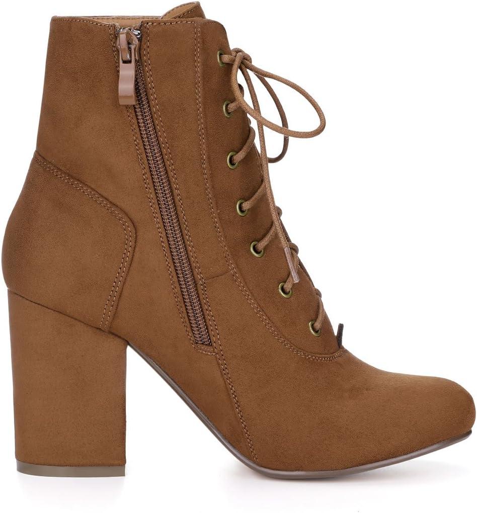 Allegra K Women's Lace Up Chunky Heel Ankle Booties(Brown)