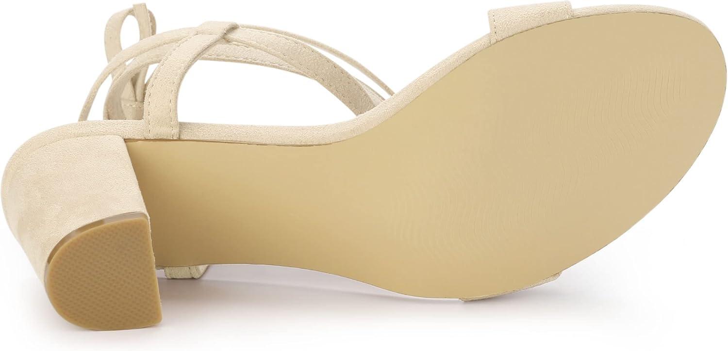 Allegra K Women's Lace Up Chunky Heels Sandals(Beige)