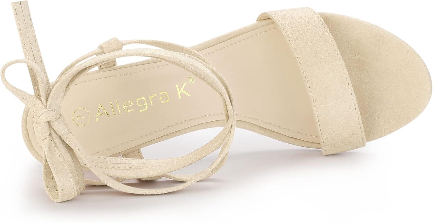 Allegra K Women’s Lace Up Chunky Heels Sandals(Beige)