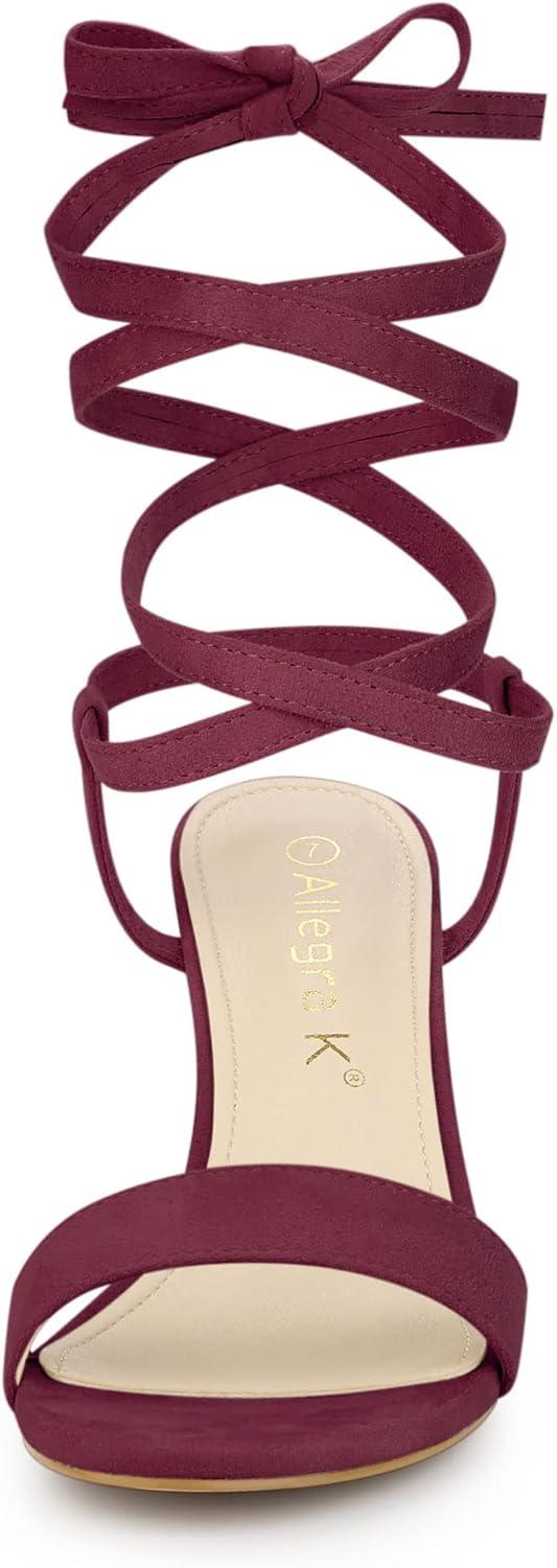 Allegra K Women’s Lace Up Chunky Heels Sandals(Burgundy)