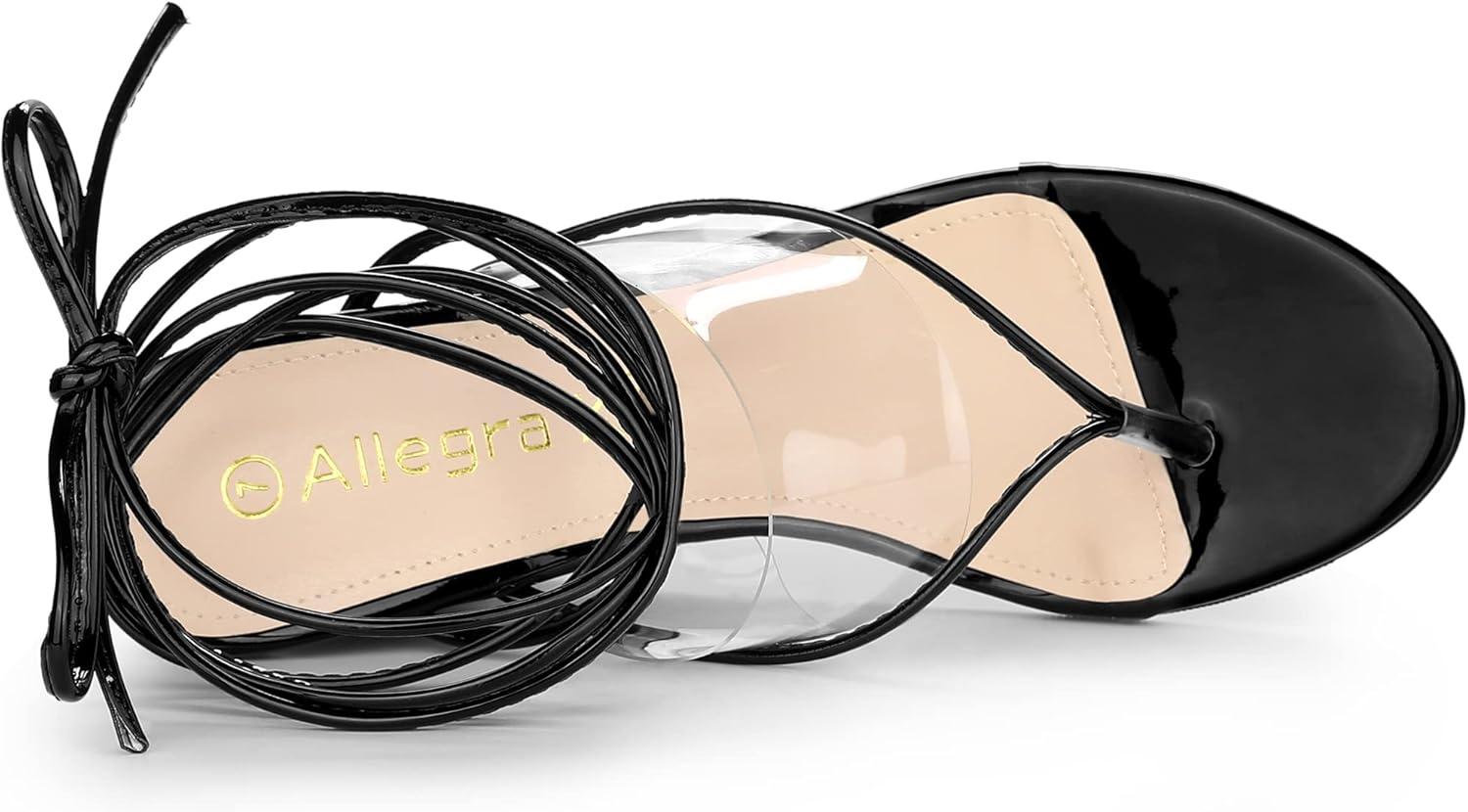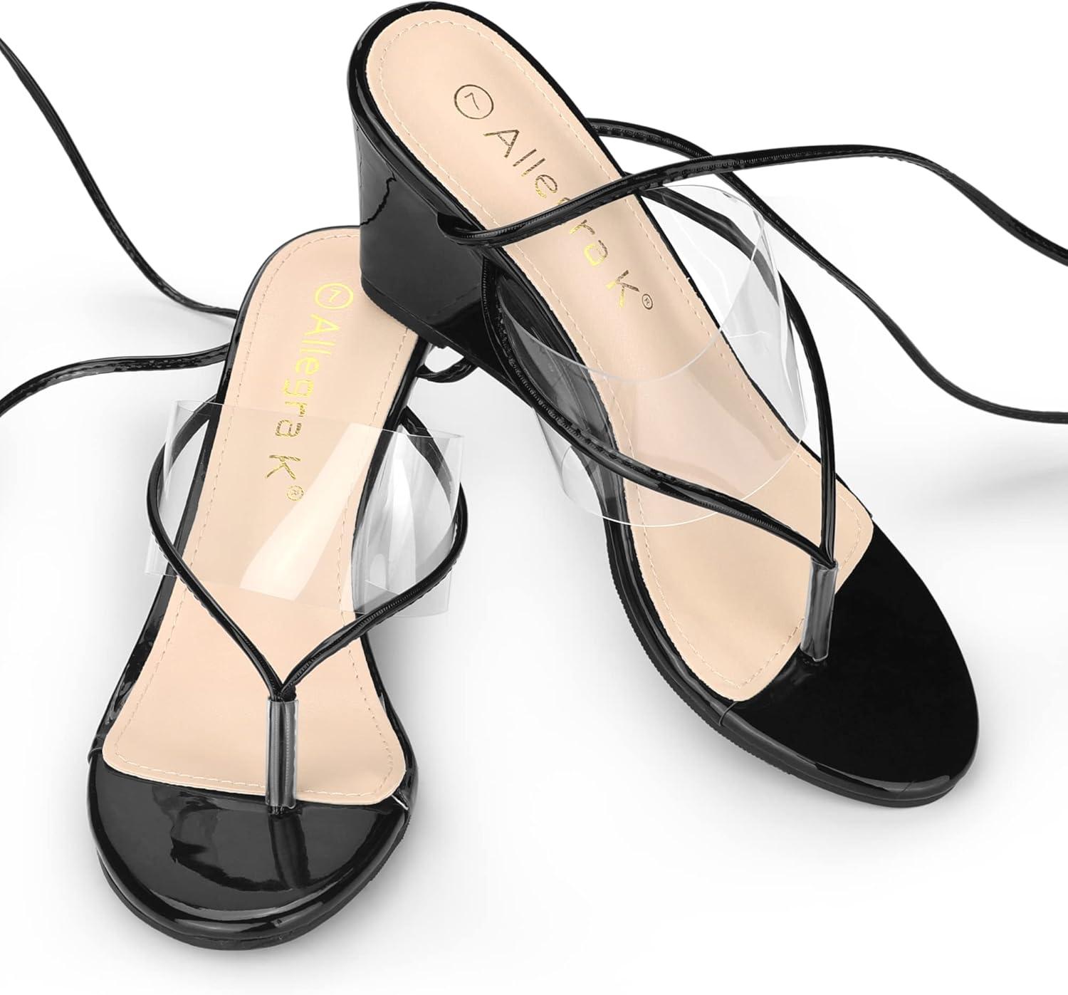 Allegra K Women’s Lace Up Clear Strap Flip Flops Wedge Sandals(Black)