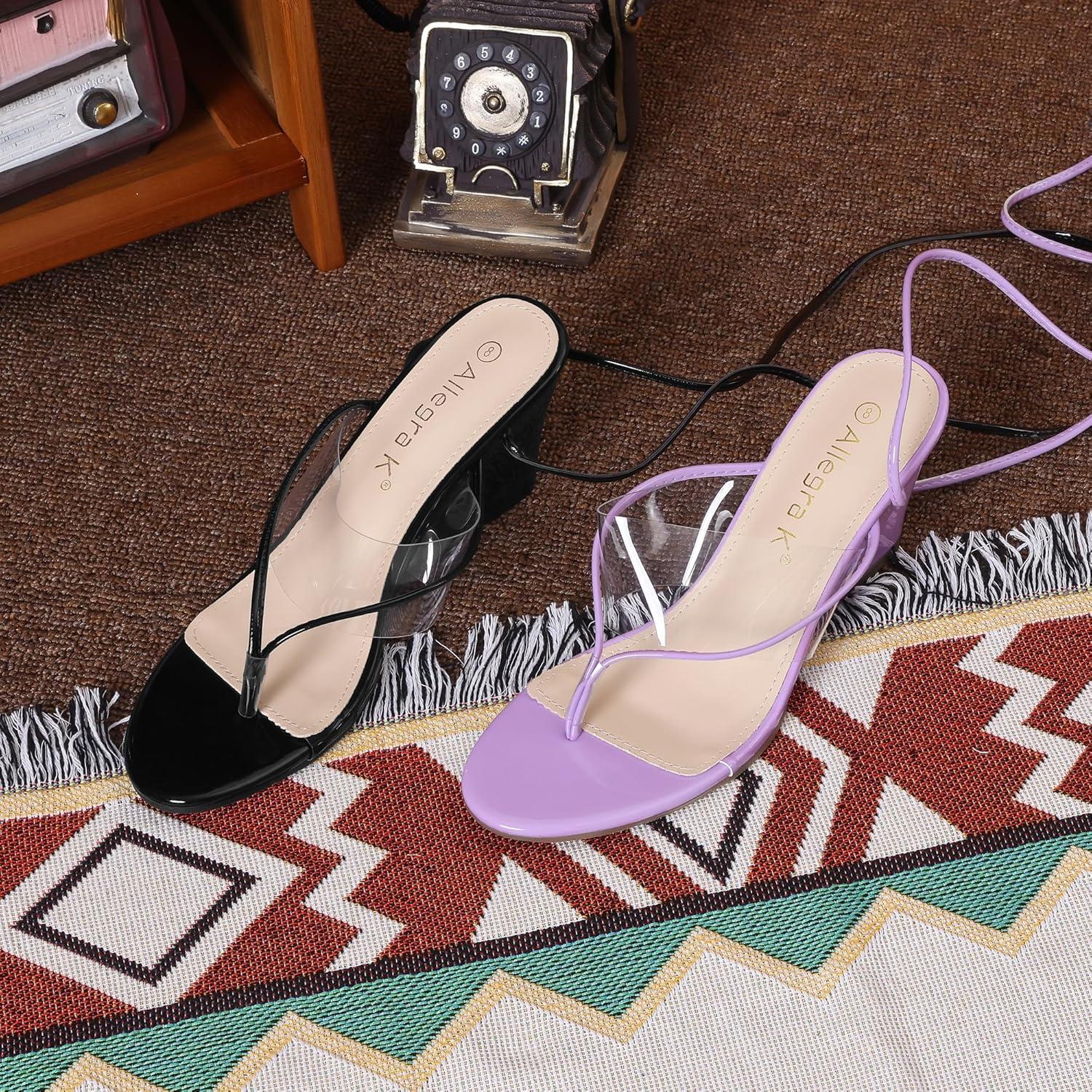 Allegra K Women’s Lace Up Clear Strap Flip Flops Wedge Sandals(Lavender)