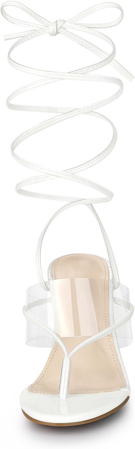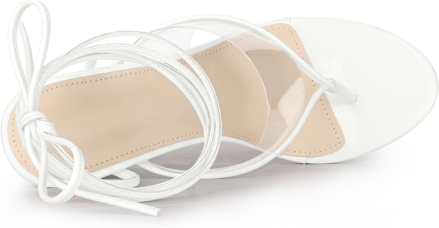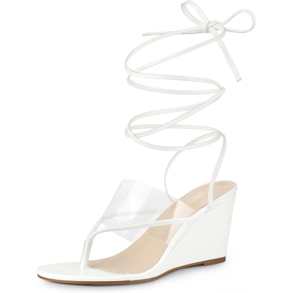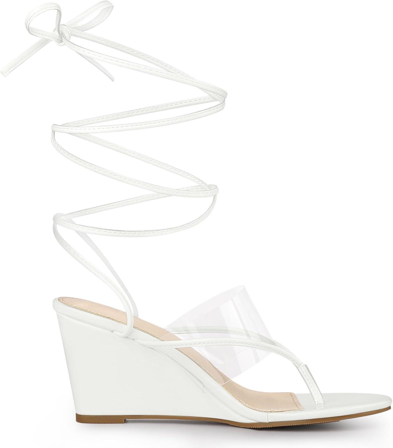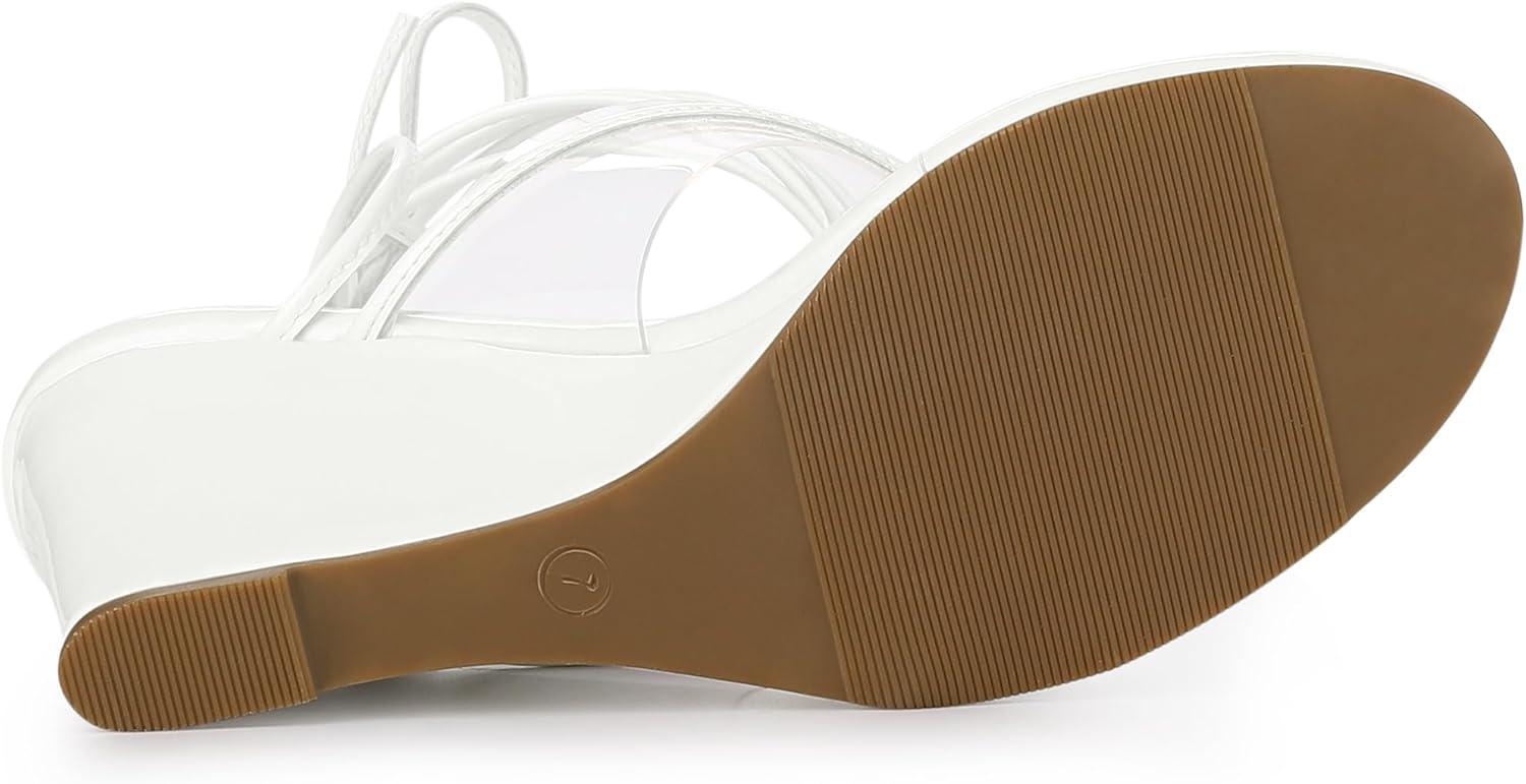 Allegra K Women’s Lace Up Clear Strap Flip Flops Wedge Sandals(White)