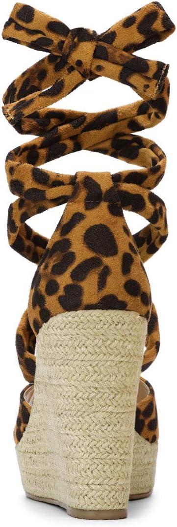 Allegra K Women's Lace Up Espadrilles Platform Platform Wedges Sandals(Leopard)