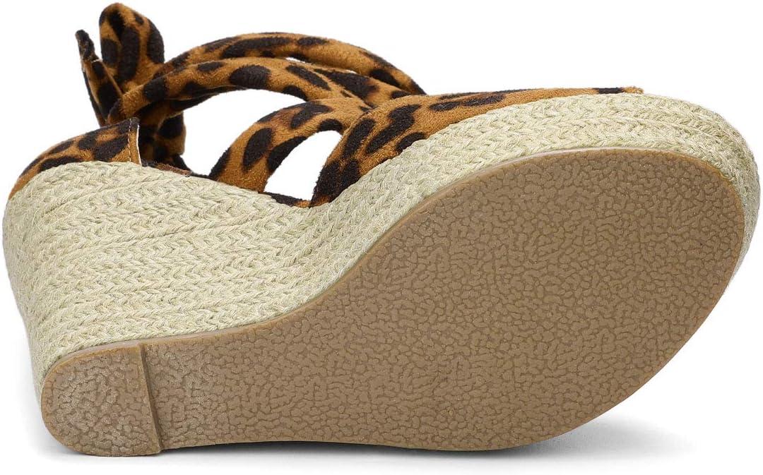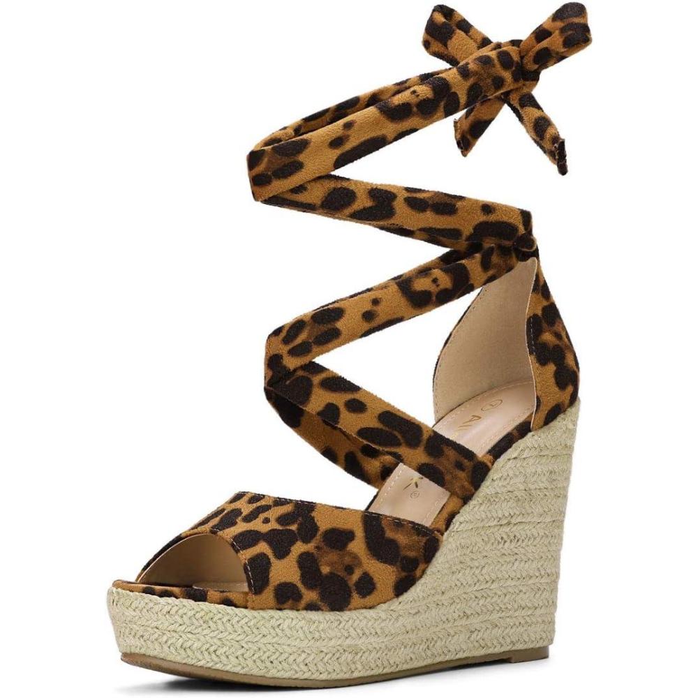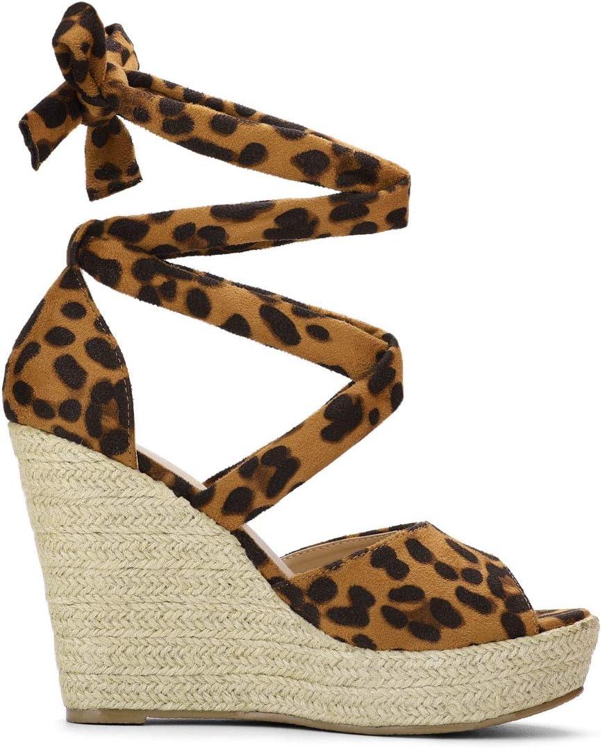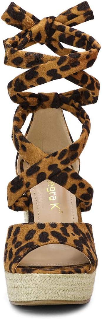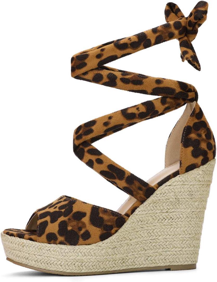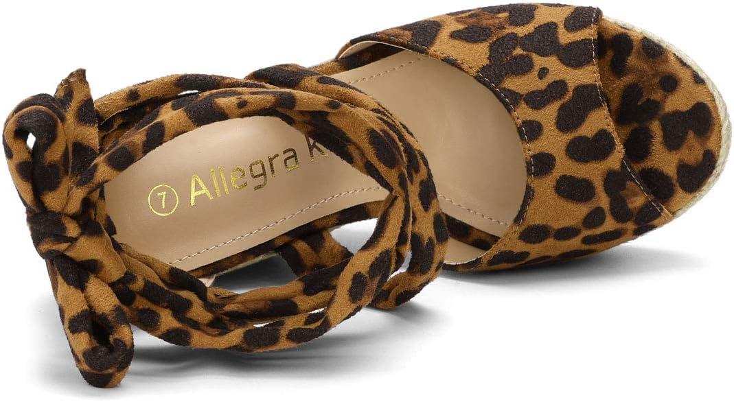 Allegra K Women’s Lace Up Espadrilles Platform Platform Wedges Sandals(Leopard)