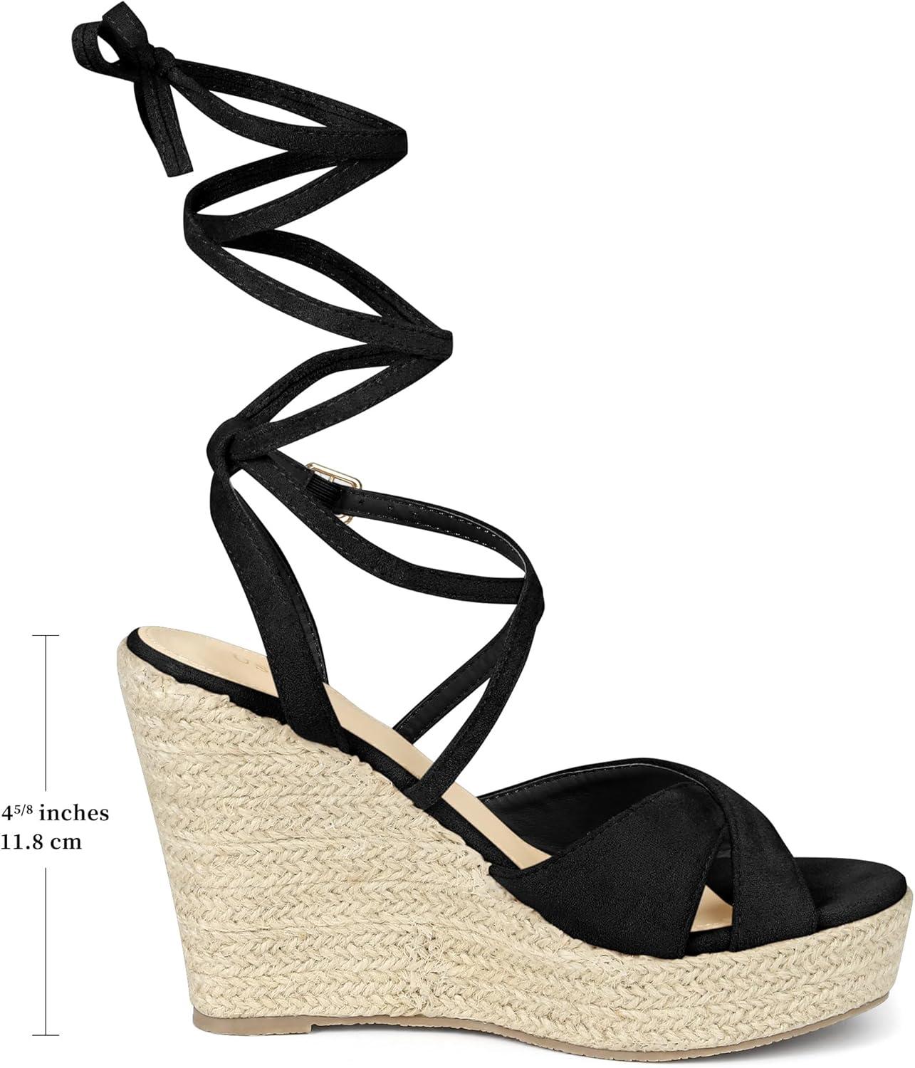 Allegra K Women's Lace Up Espadrilles Wedges Heel Platform Heels Sandals(Black)