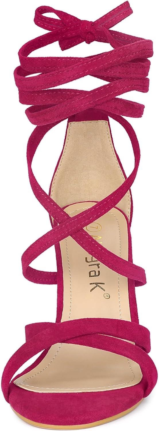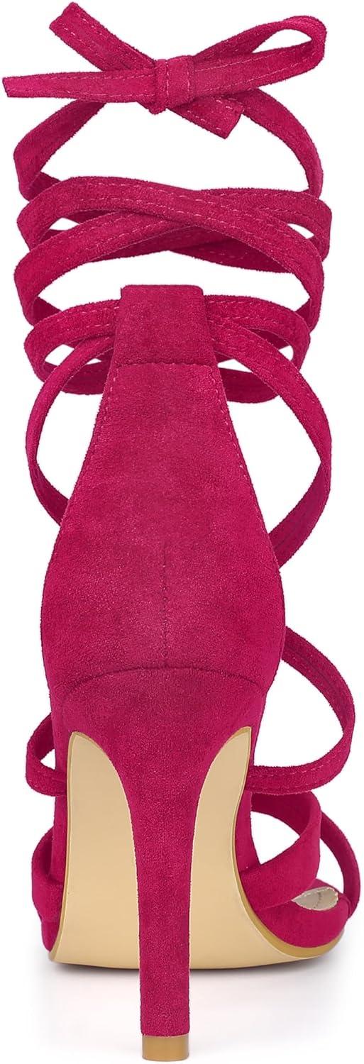 Allegra K Women's Lace Up Heels Stiletto High Heel Sandals(Hot Pink)