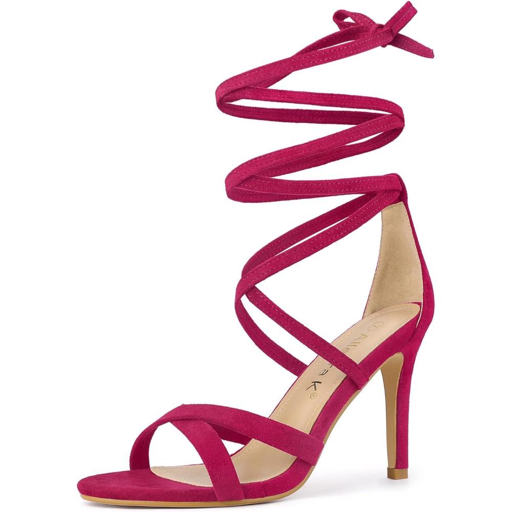 Allegra K Women’s Lace Up Heels Stiletto High Heel Sandals(Hot Pink)