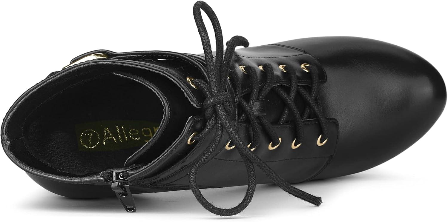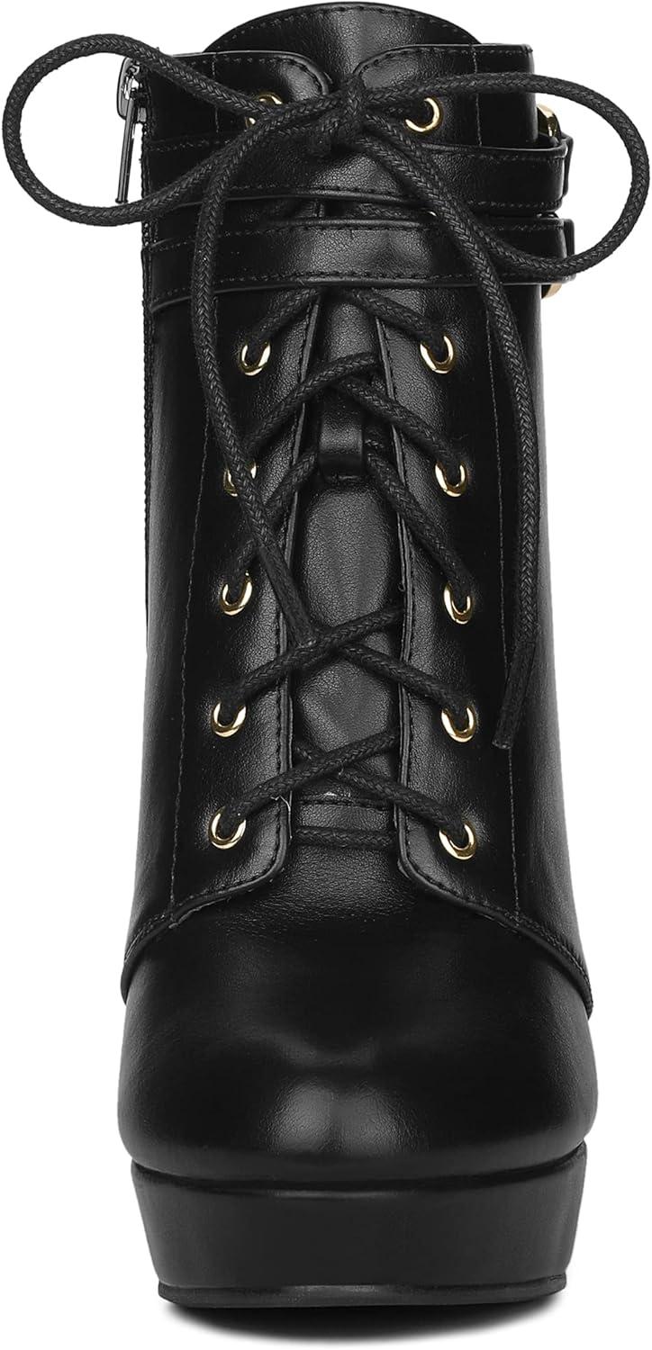 Allegra K Women’s Lace Up Strap Platform Block Heels Ankle Boots(Black)